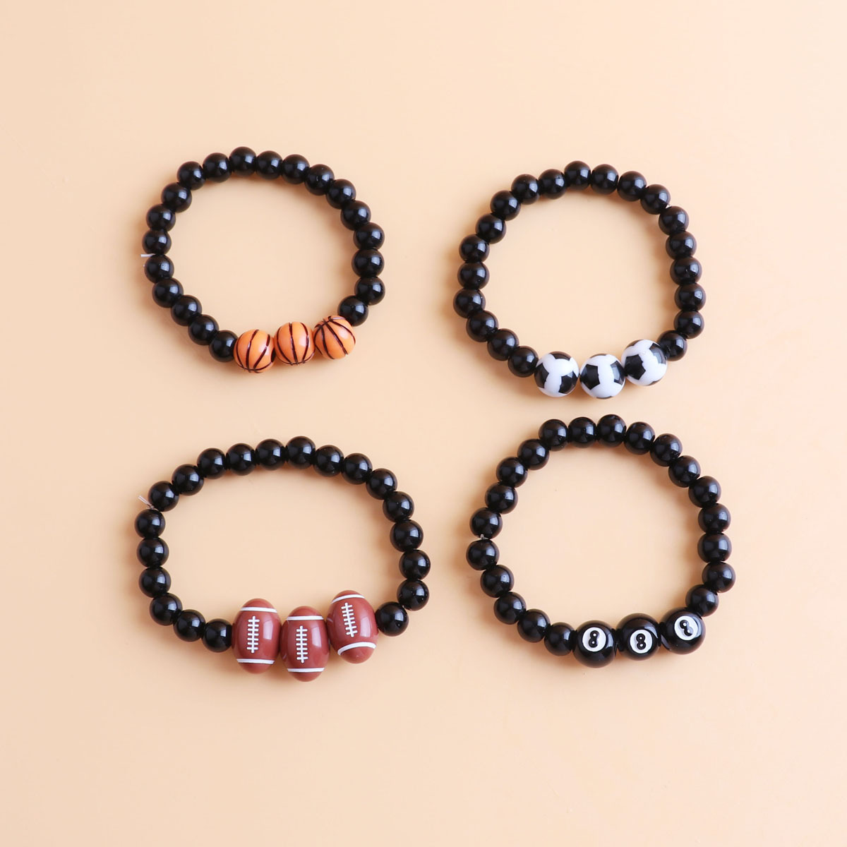 8mm black beads + 12mm football