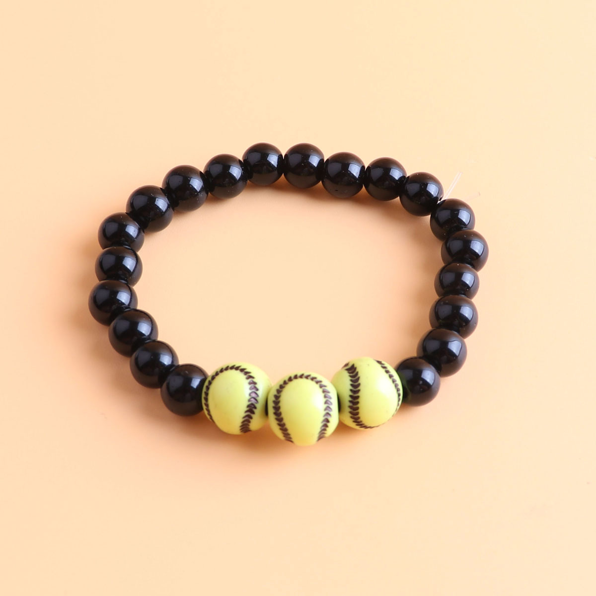 8mm black beads + 12mm yellow and black softball