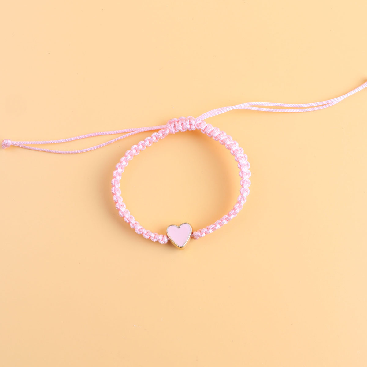 pink love heart, black rope woven bracelet
