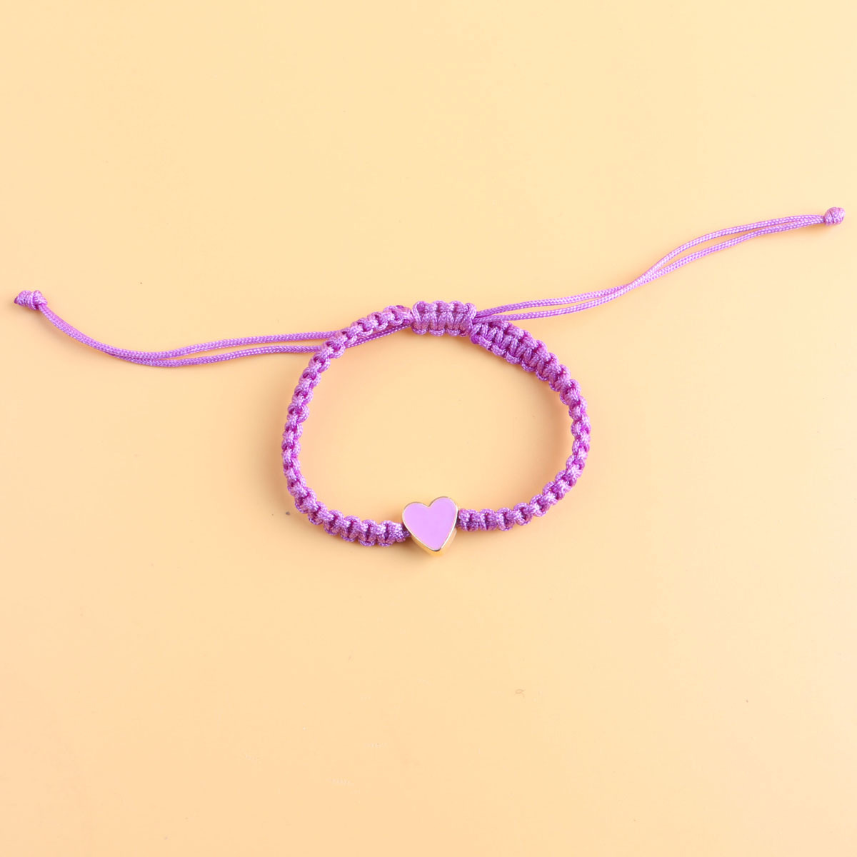 purple love heart, black rope woven bracelet