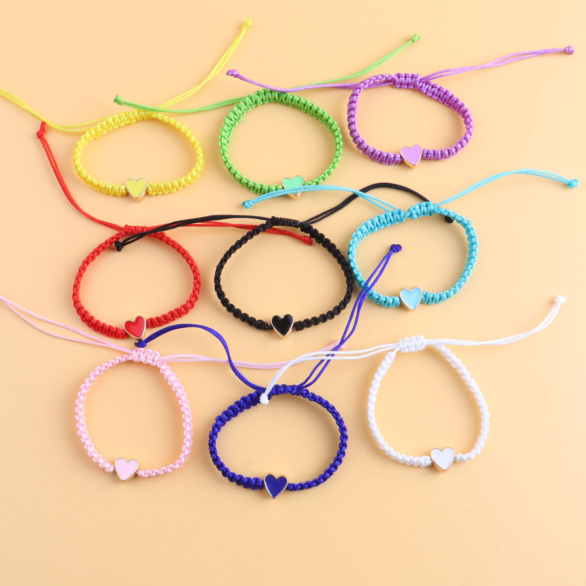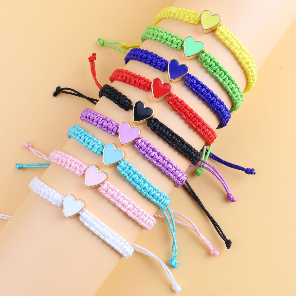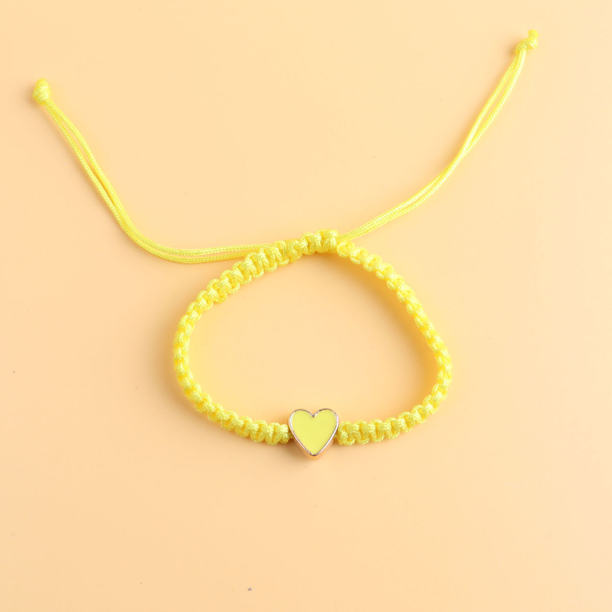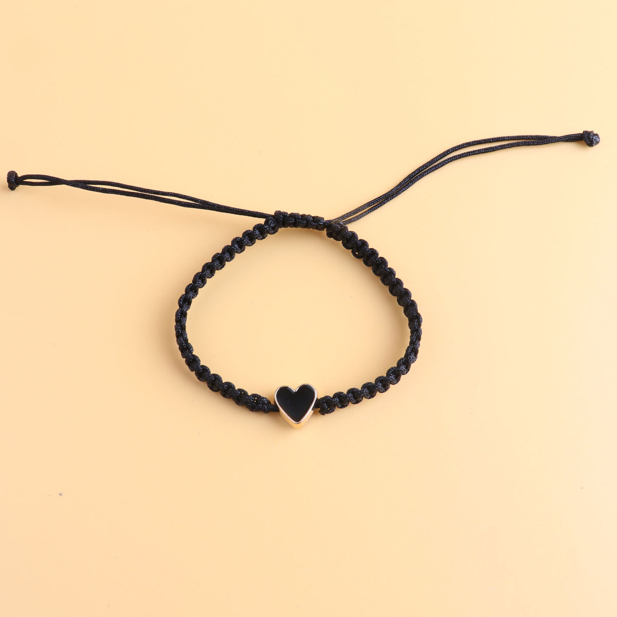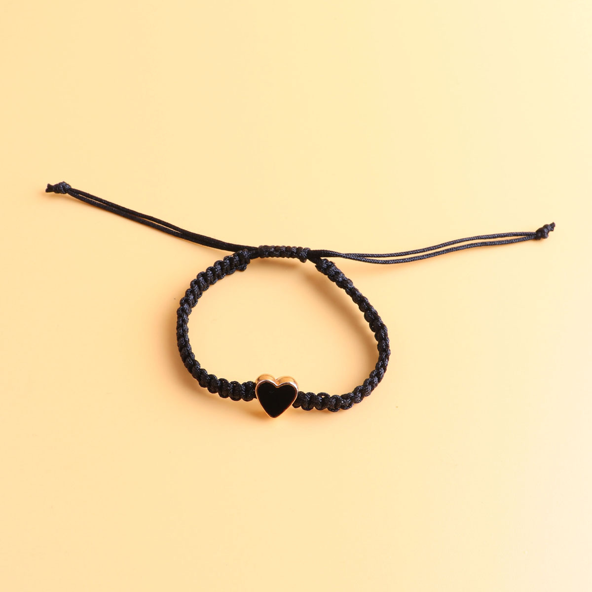 yellow heart shaped, black rope woven bracelet