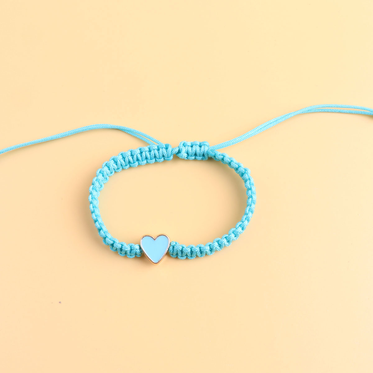 water blue love heart, black rope woven bracelet