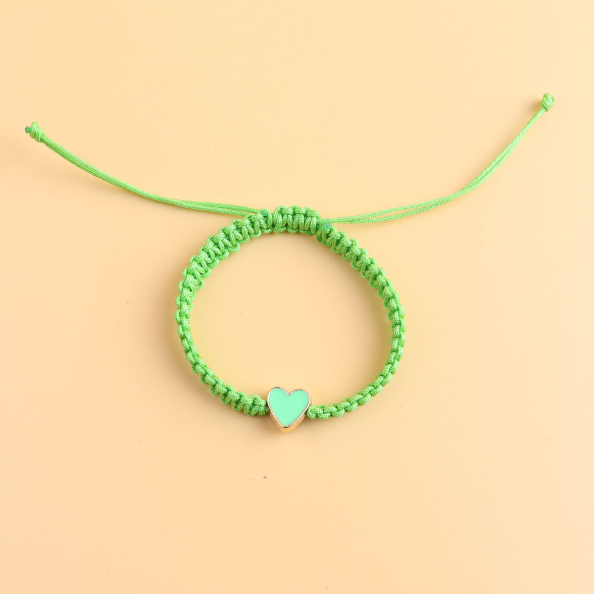 green heart, black rope woven bracelet