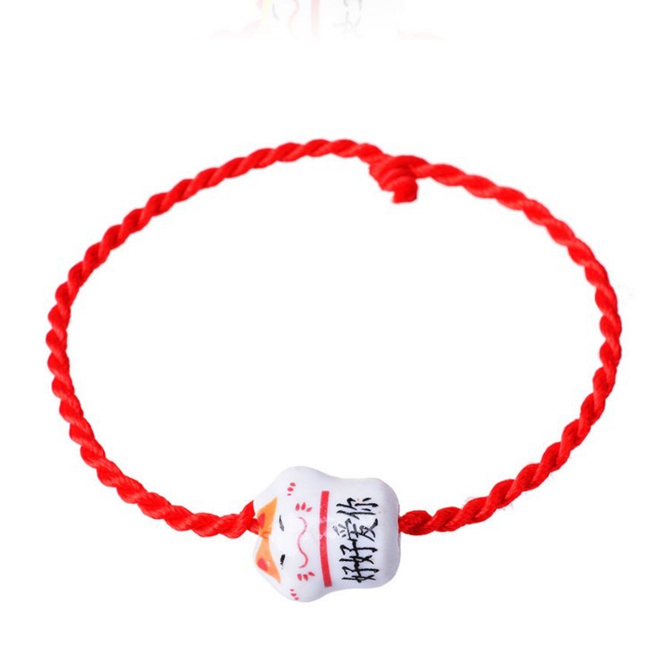 ceramic cat red rope