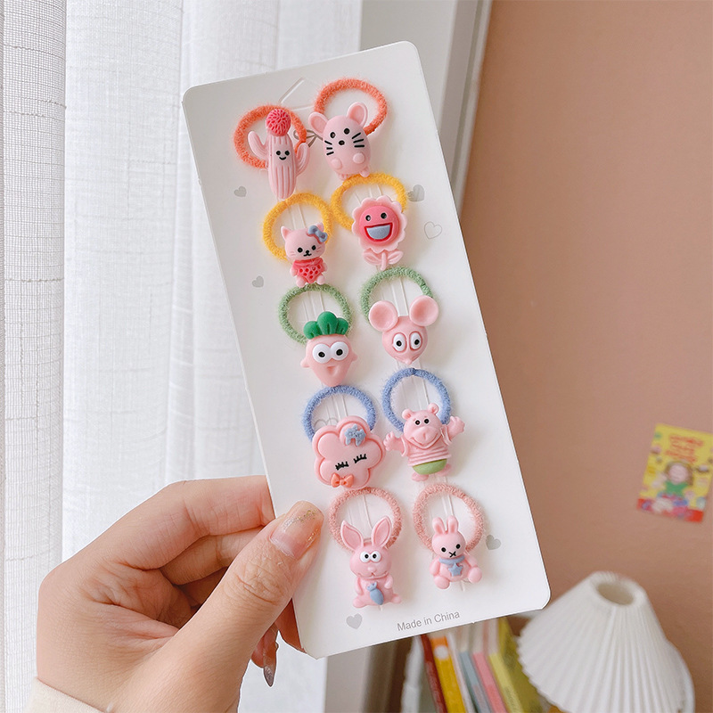 1# frog panda plush hair ring 10-piece set opp bag