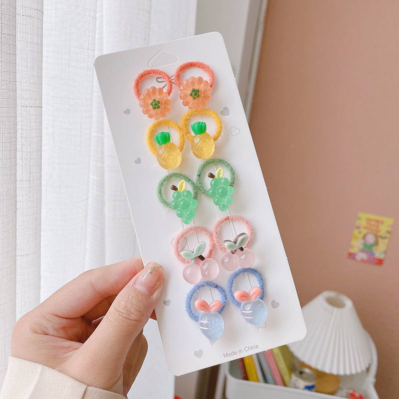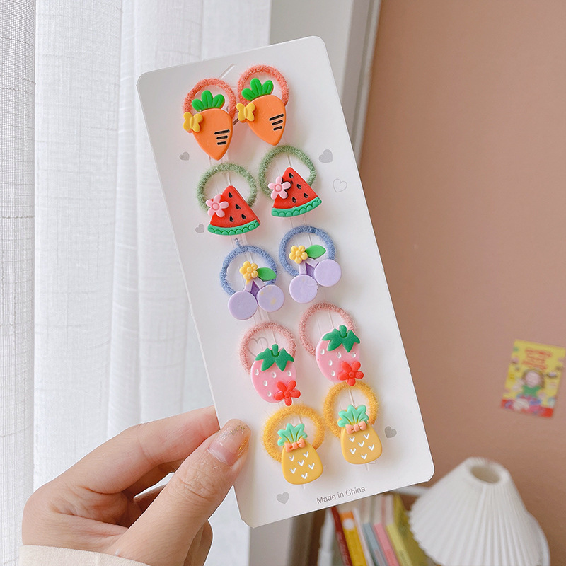 2# transparent fruit plush hair ring 10-piece opp bag