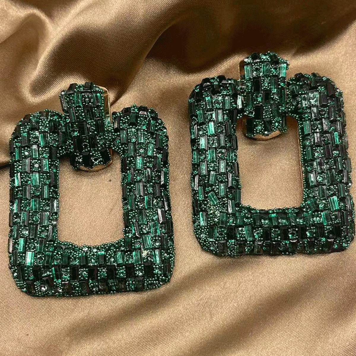dark green square earrings