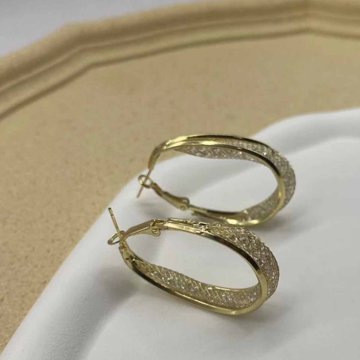 golden hollow oval earrings