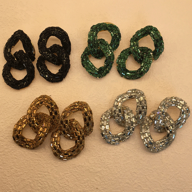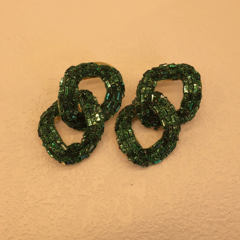 dark green double buckle earrings