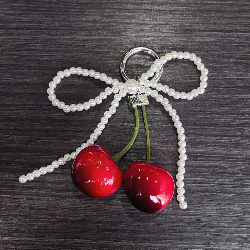 white imitation pearl bowknot pendant keychain 1