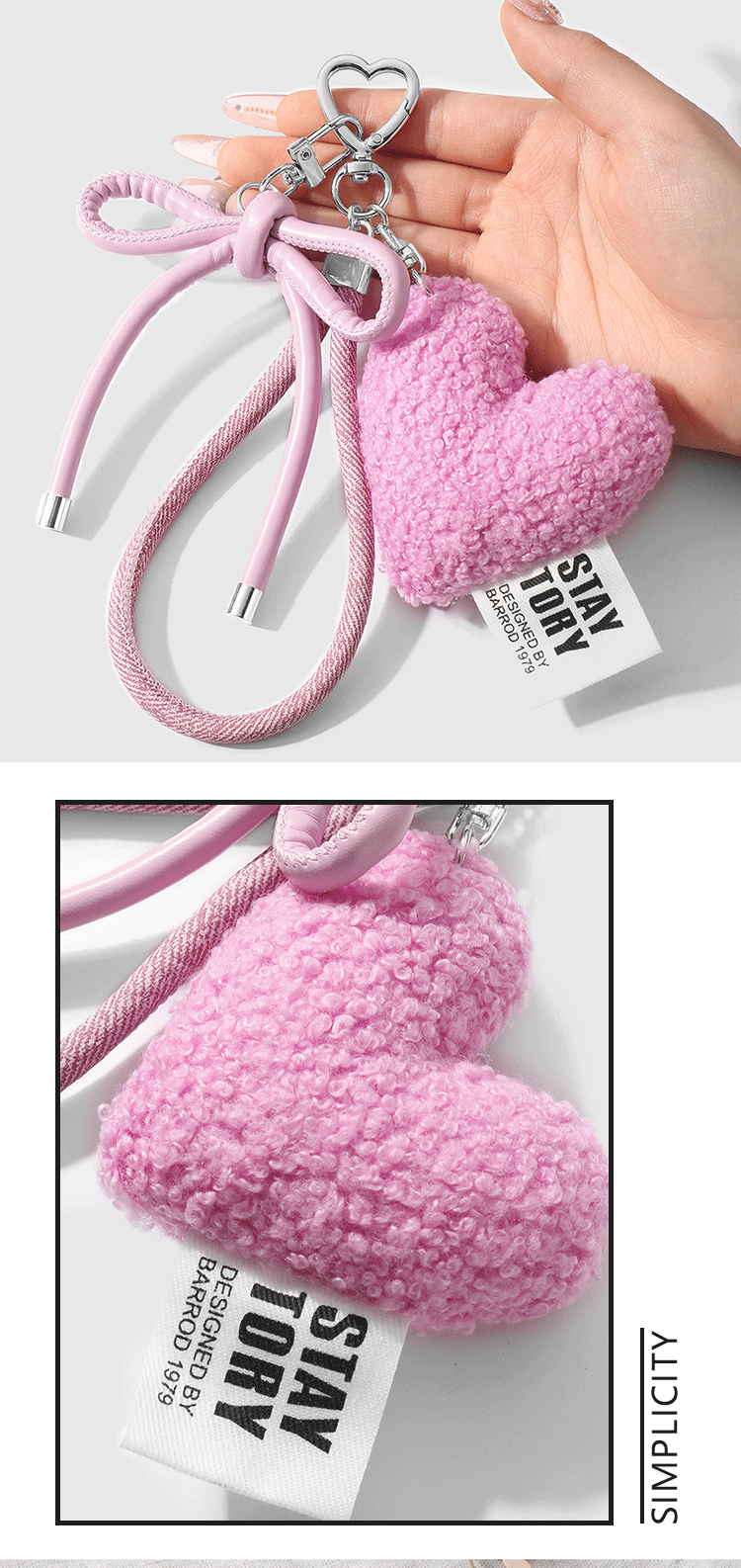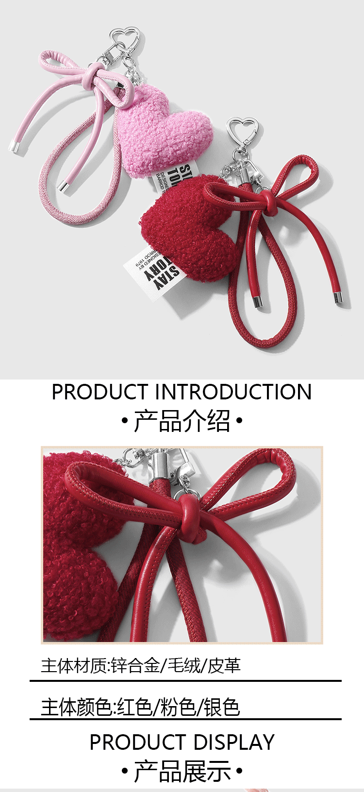 one pink love heart bow tie keychain