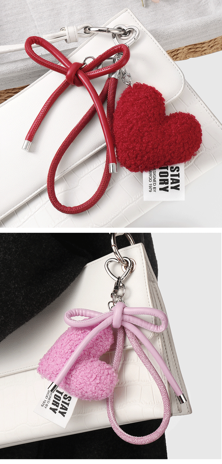 one red love heart bow tie keychain
