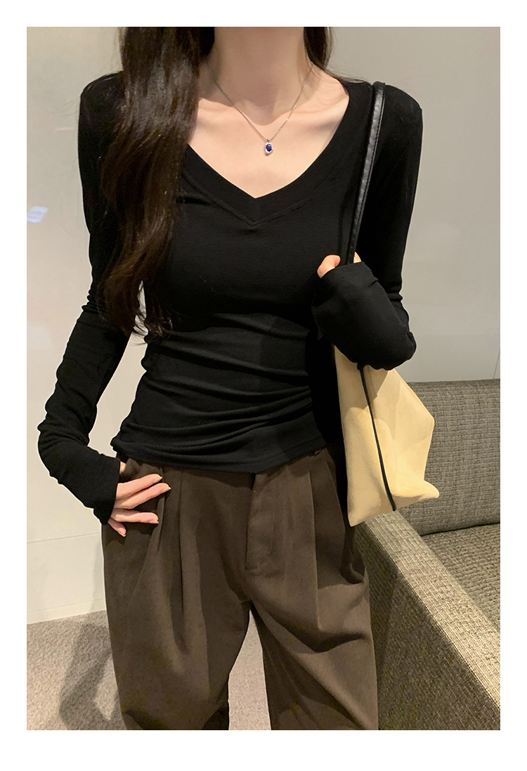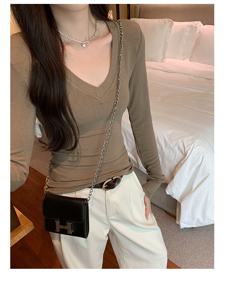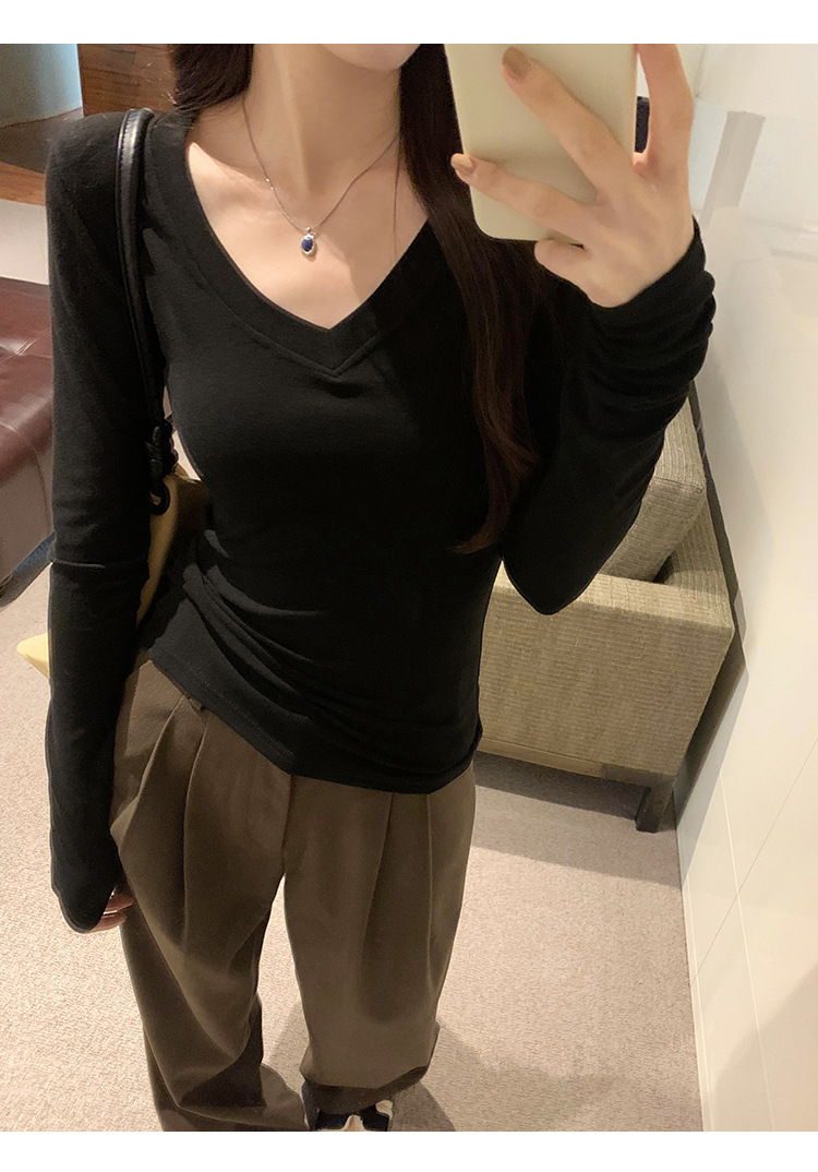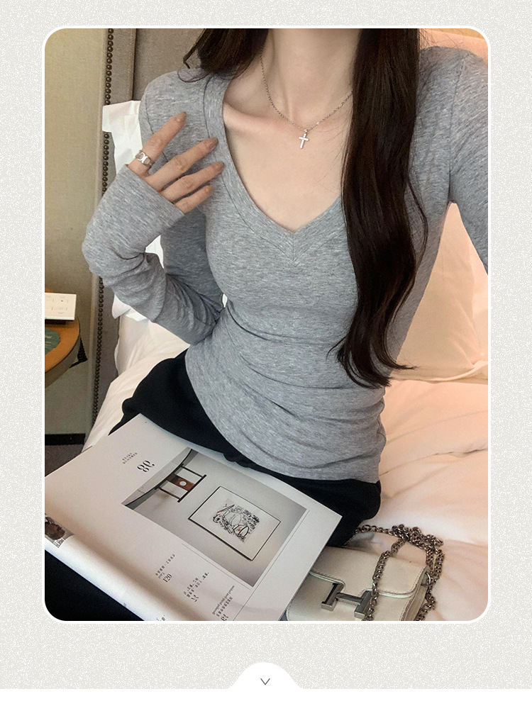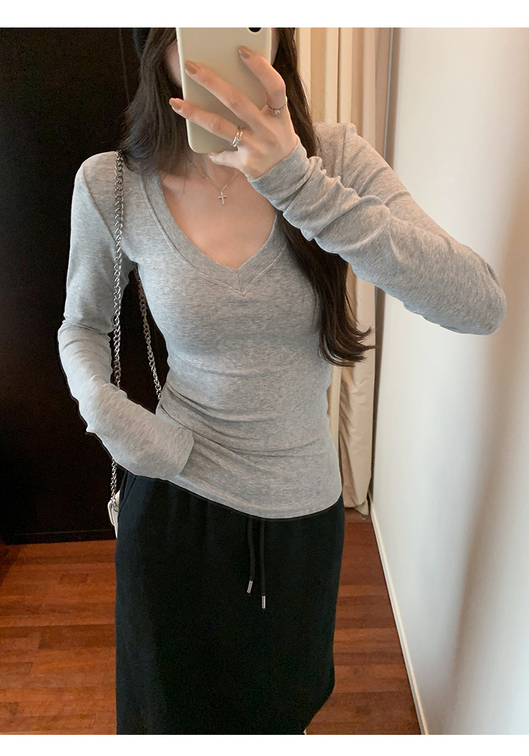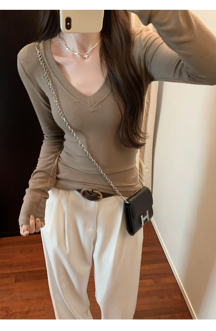discount sweet spicy early autumn thread v-neck slim fit slimming inner t-shirt female brand new design sense top