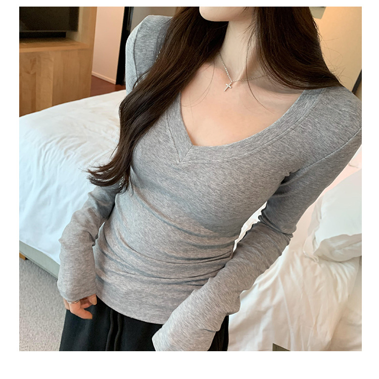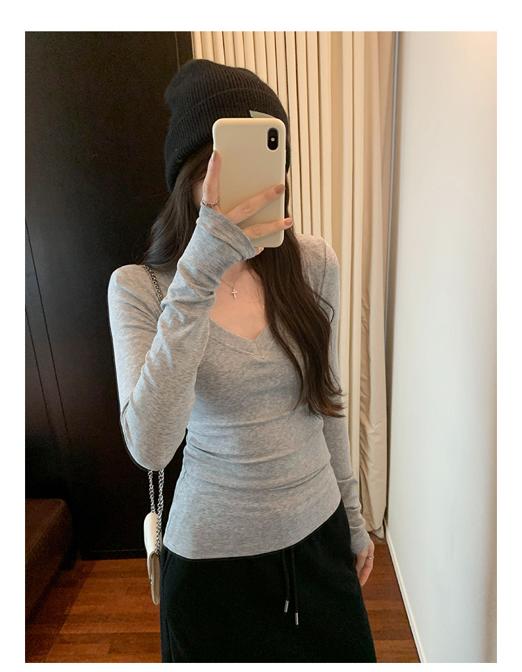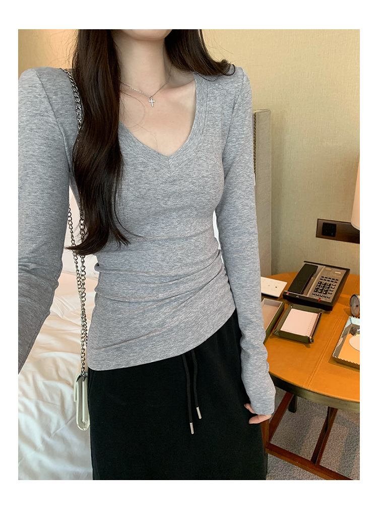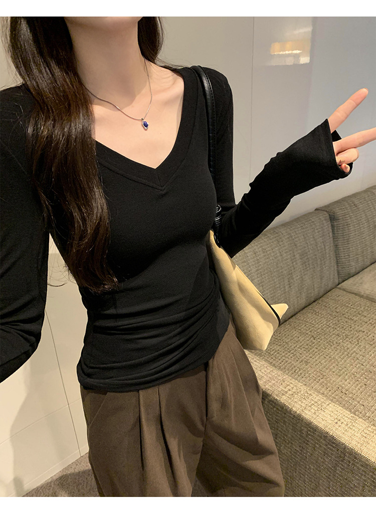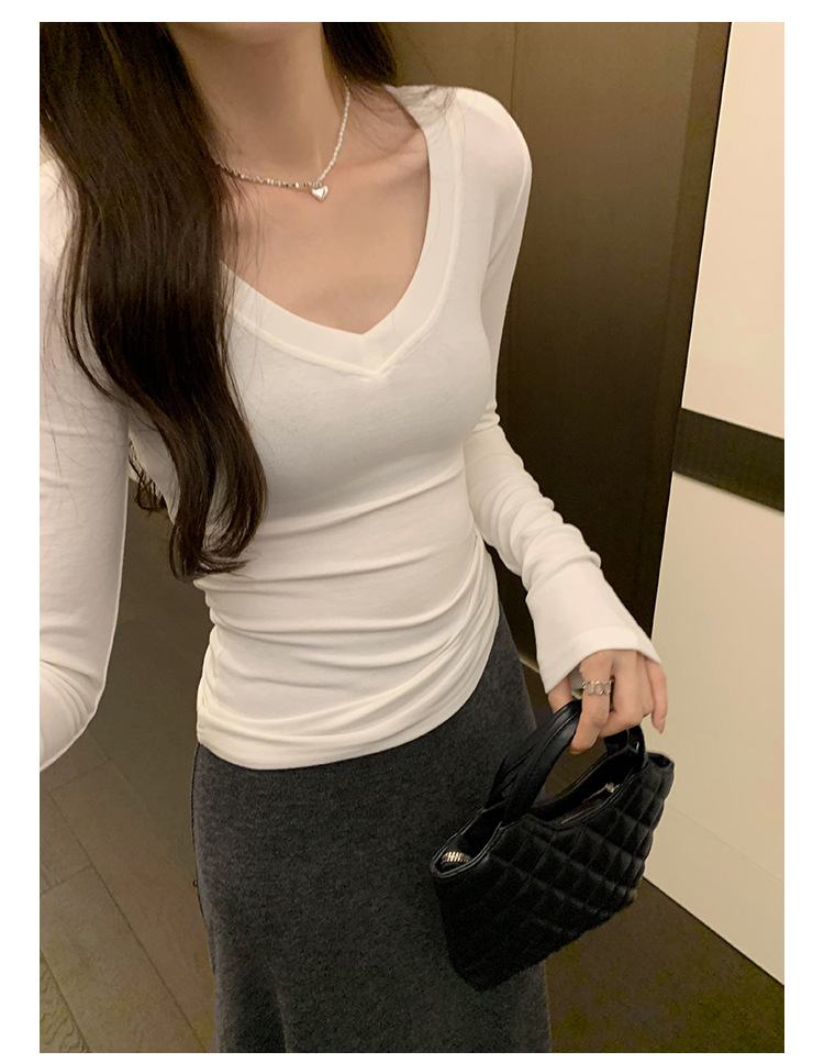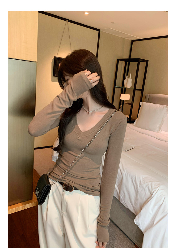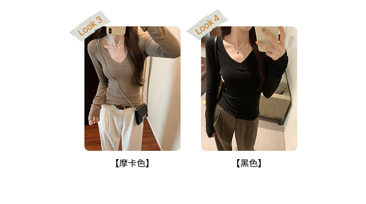 discount sweet spicy early autumn thread v-neck slim fit slimming inner t-shirt female brand new design sense top