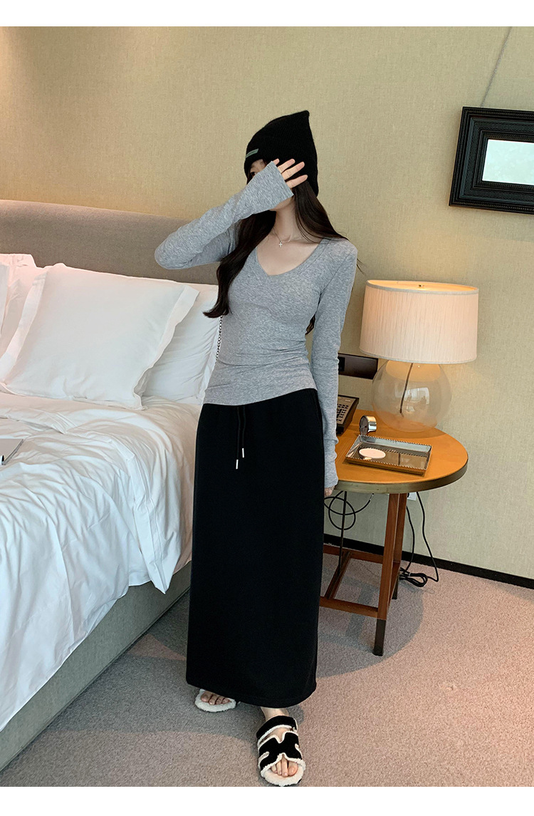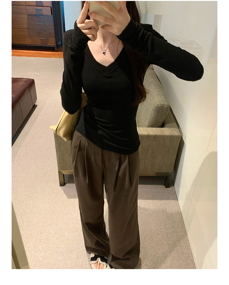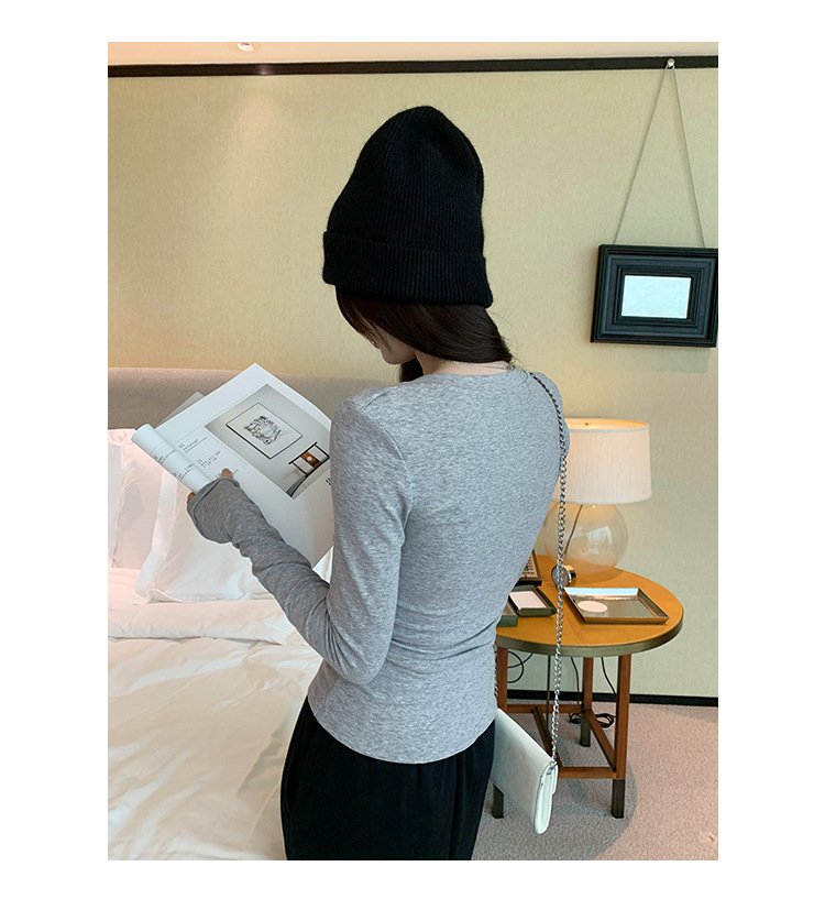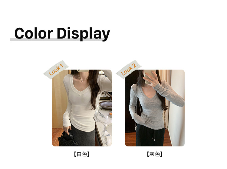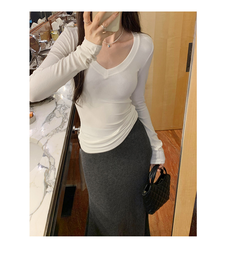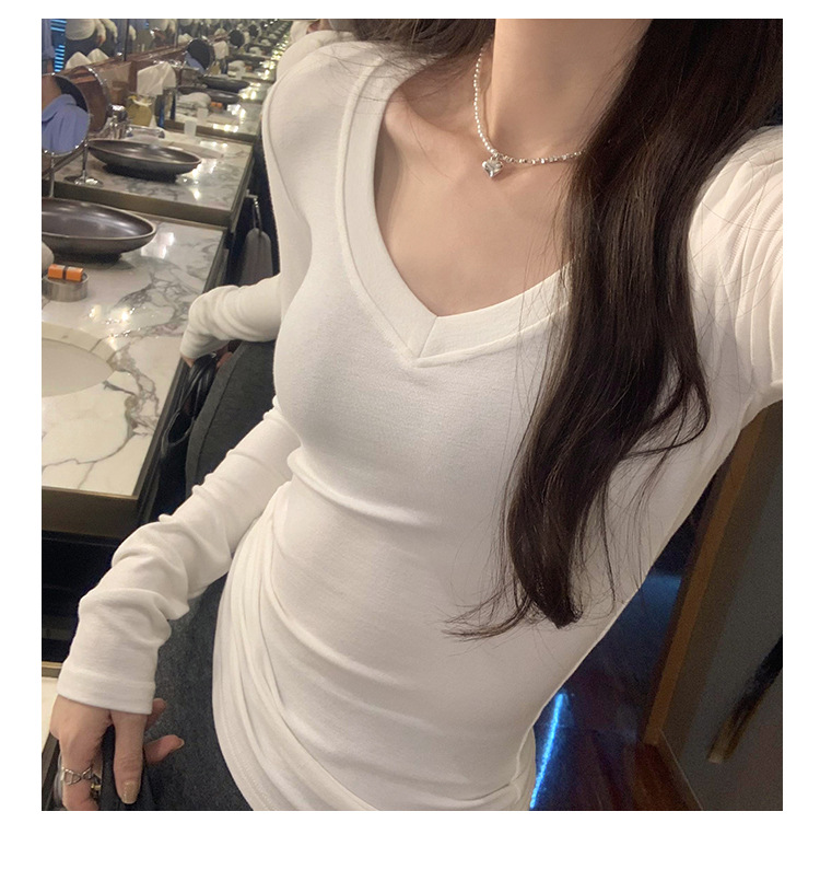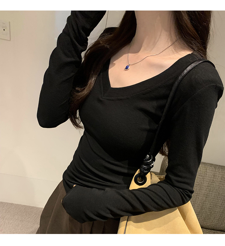 discount sweet spicy early autumn thread v-neck slim fit slimming inner t-shirt female brand new design sense top