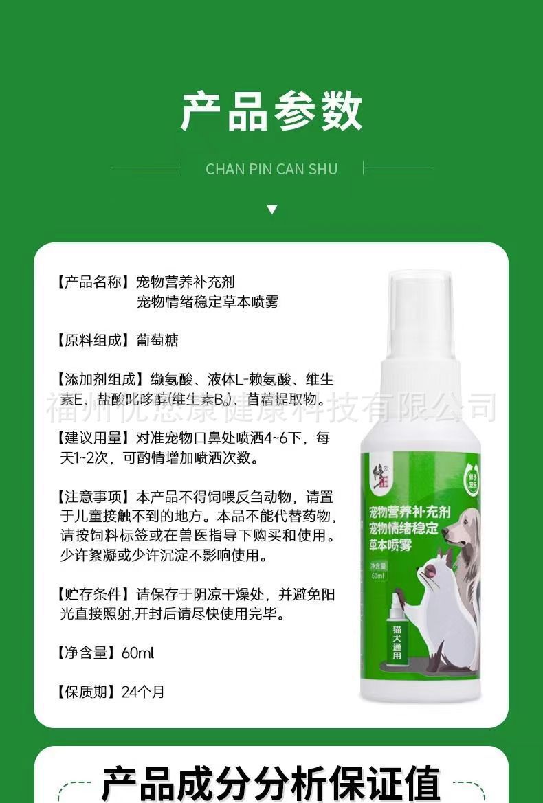 pet nutrition supplement pet mood stable herbal spray