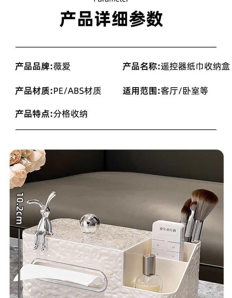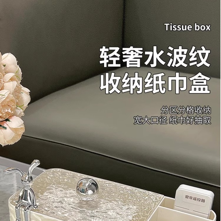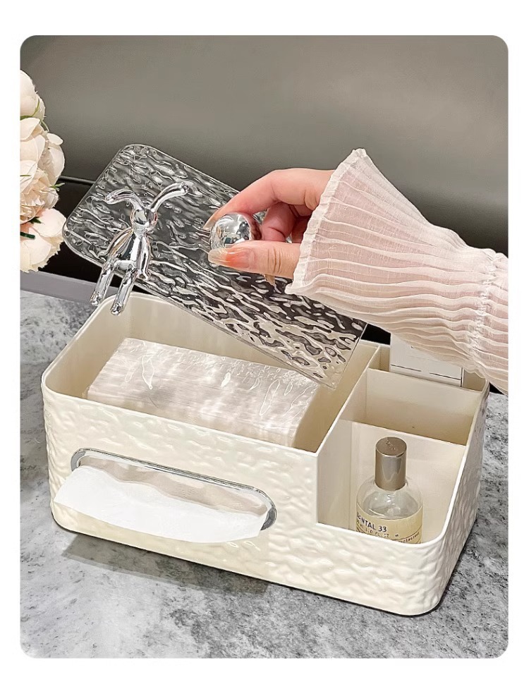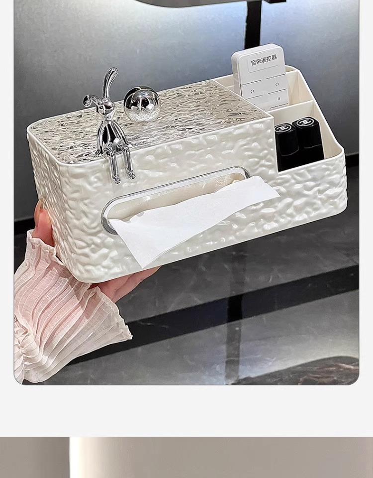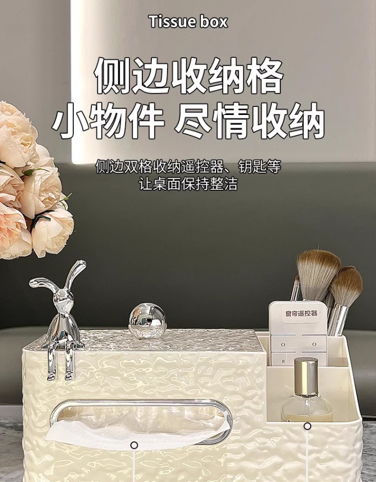 cream color tissue storage box (silver balls) + silver rabbit