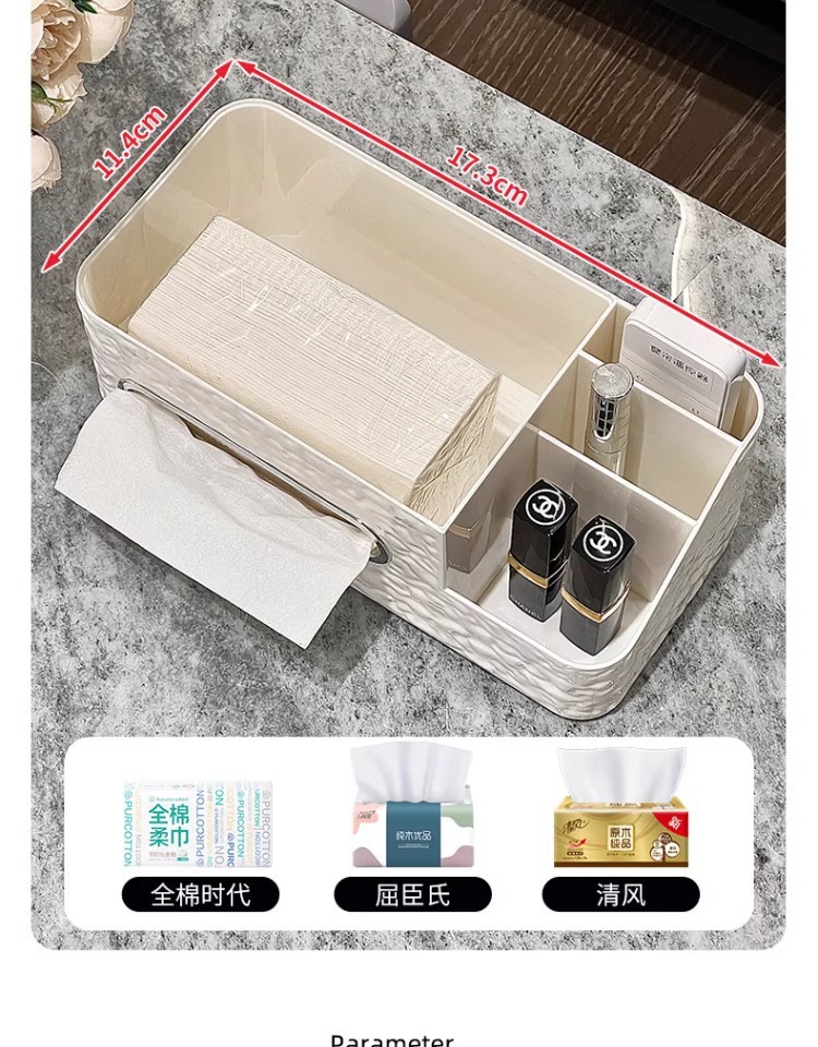 cream color tissue storage box (silver balls)