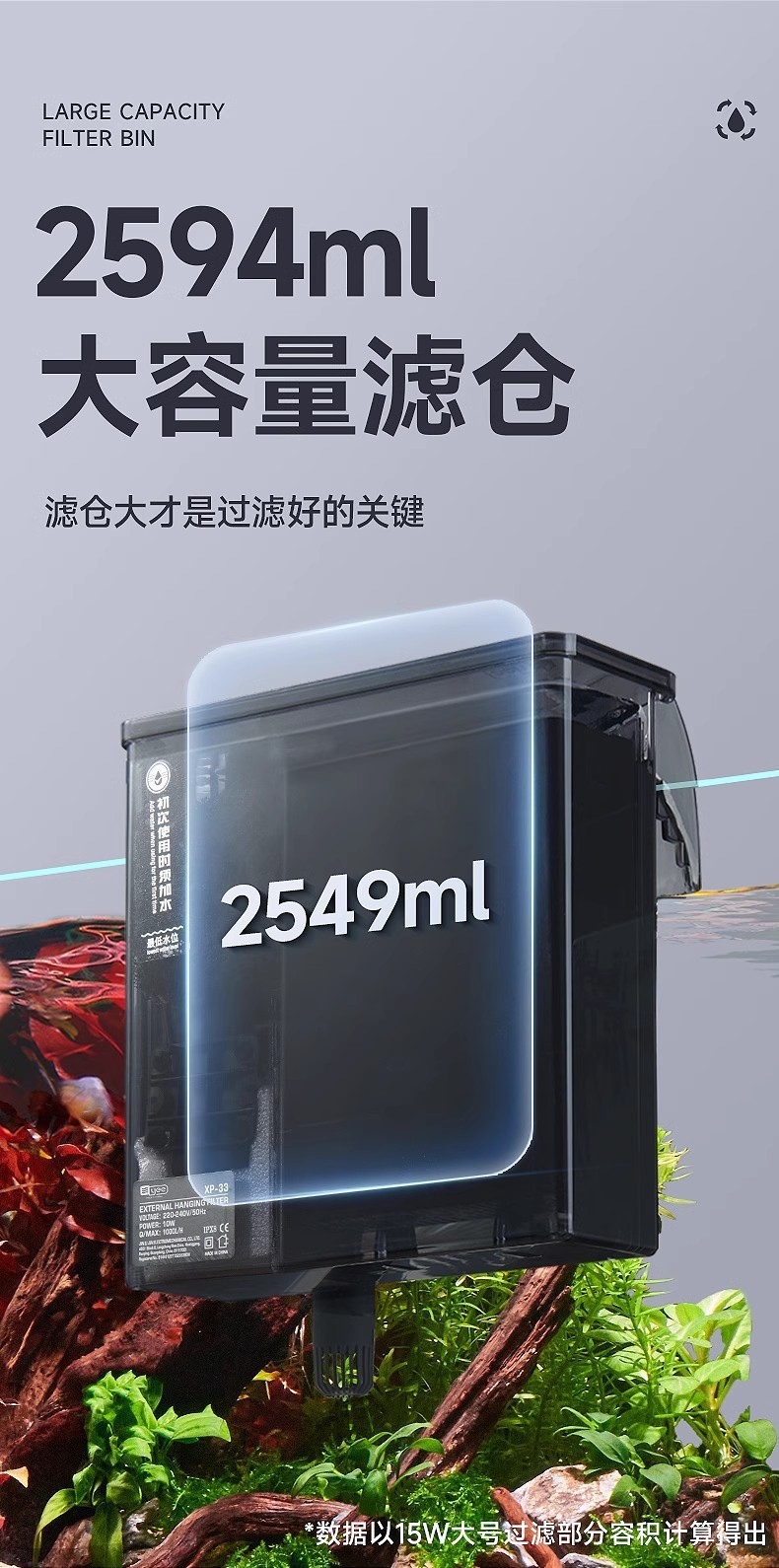 [15w large capacity filter bin] suitable for 60-100cm fish tank