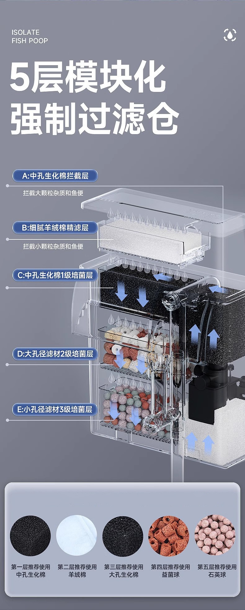 [10w/reinforced filter material bacterium cultivation] applicable to 40-60cm fish tank