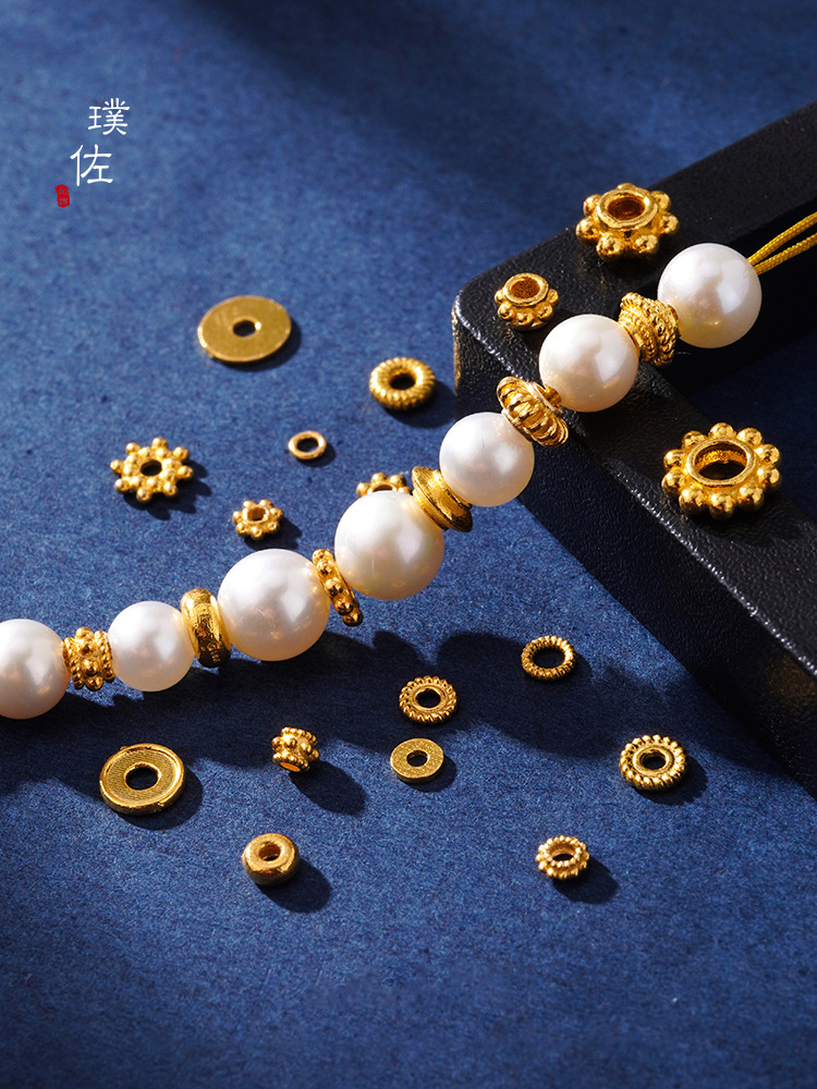 3-38-4 exquisite alluvial gold pumpkin beads through hole 1
