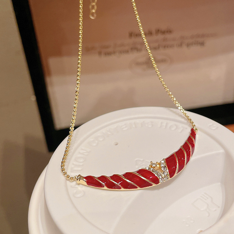 red oil dripping pattern diamond v-shaped necklace