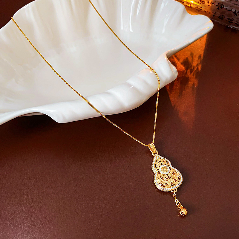gold plated gourd zircon bell necklace