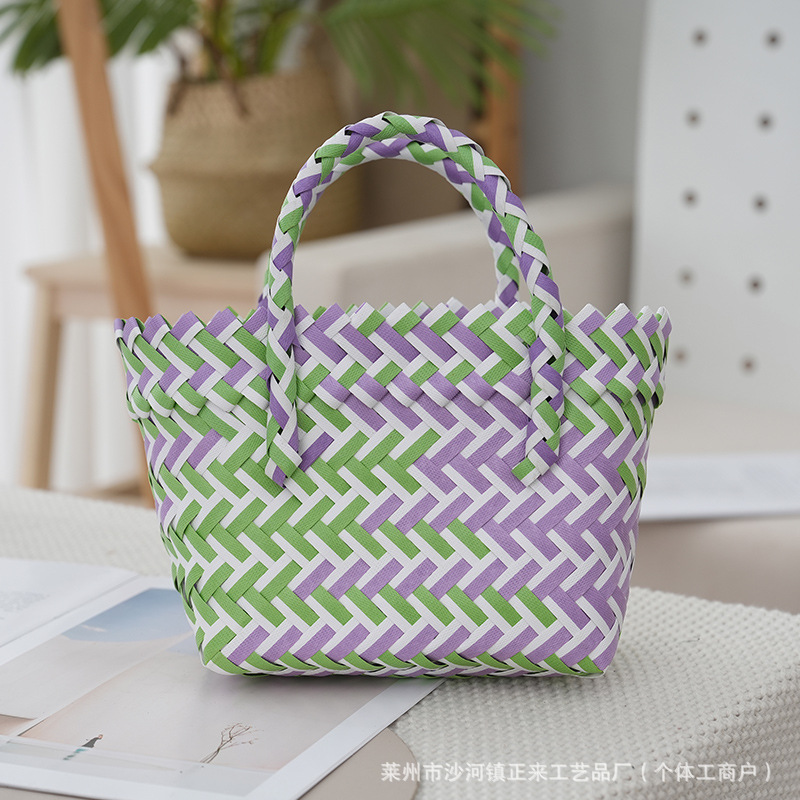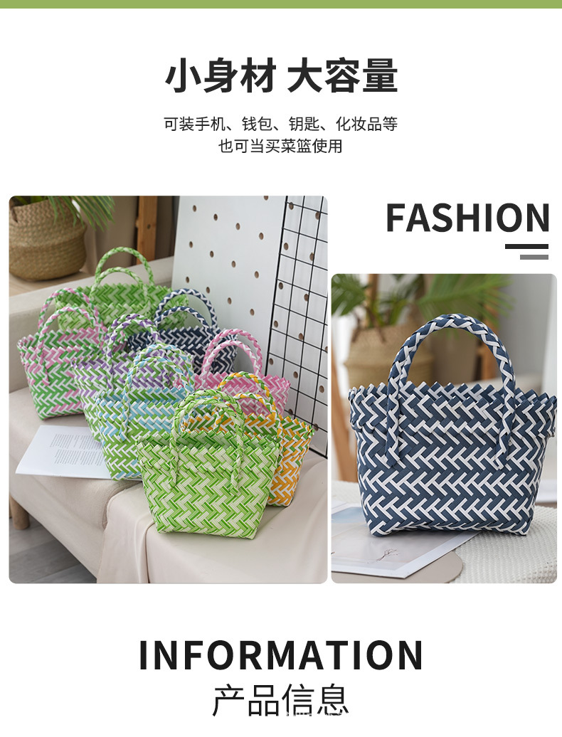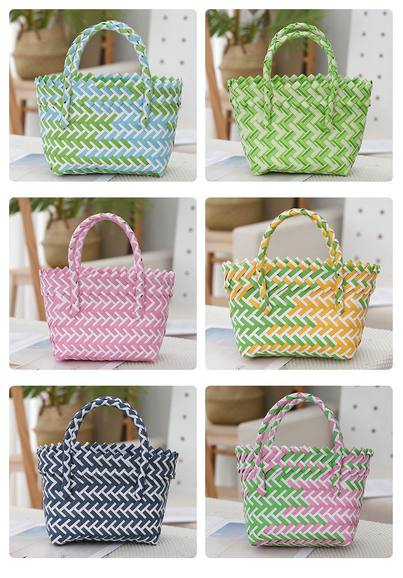 plastic woven vegetable basket women's bag portable beach bag hand gift basket fashion all-match children's basket new internet celebrity