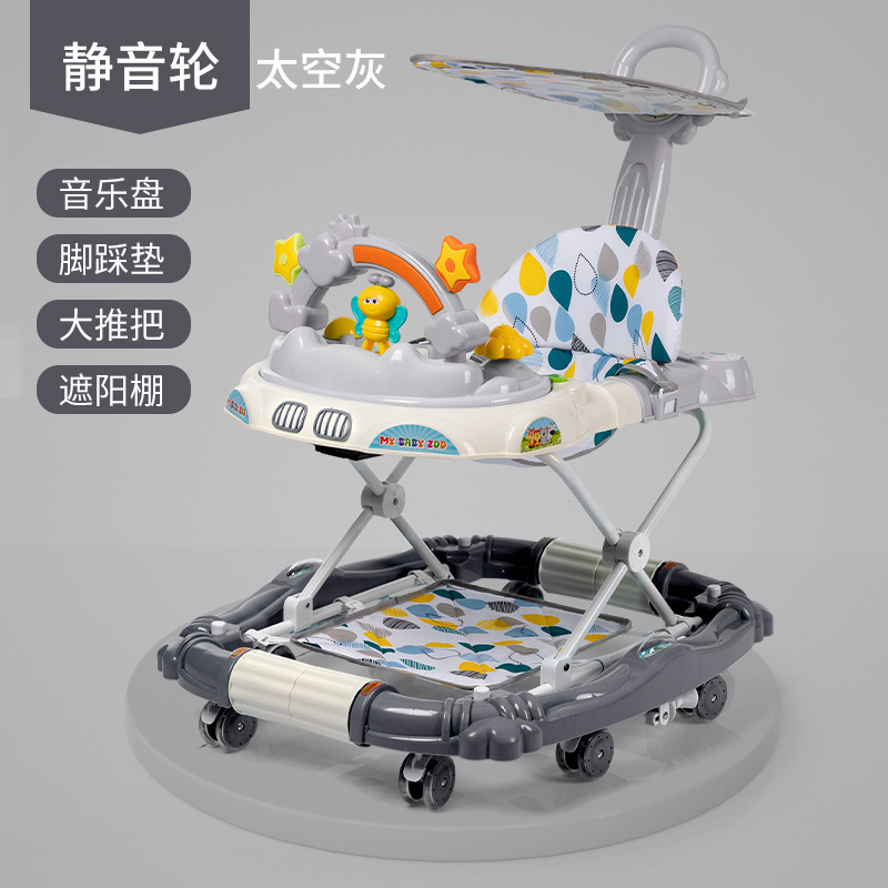 upgraded version-sky gray [silent wheel + music box + foot pad + big push handle]]