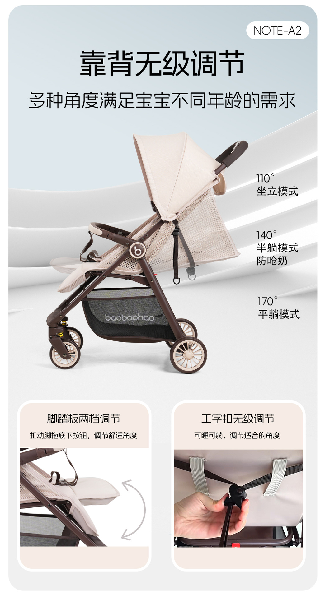 a2 multi gray (cloth) + mosquito net + rain cover + trolley mat + cup holder + small hanging bag +2 hooks