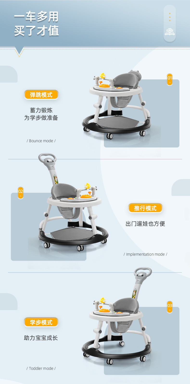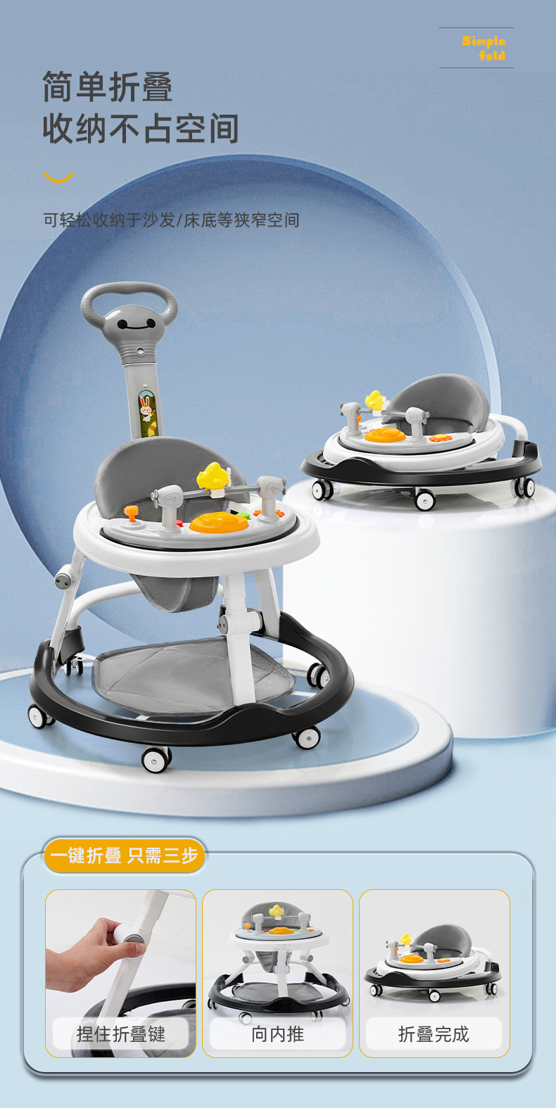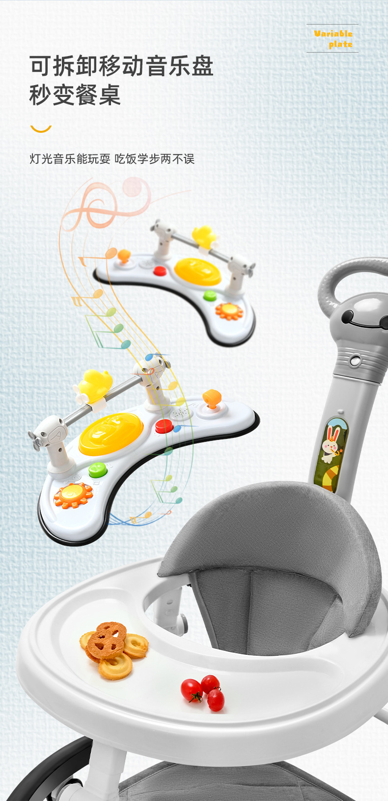 22 new toddler gray + silent wheel + music foot mat small push handle