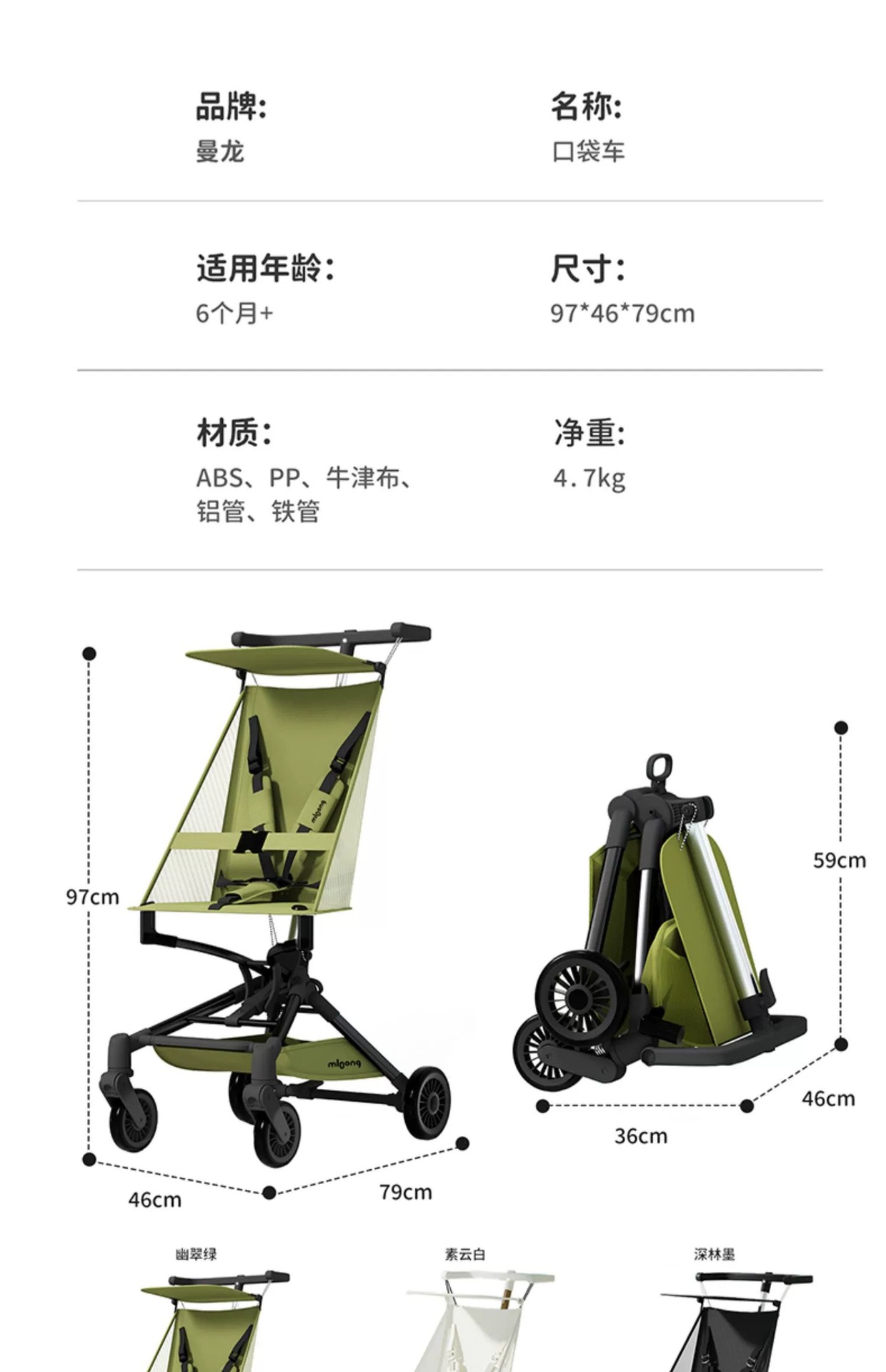 t5 children's stroller-quiet green