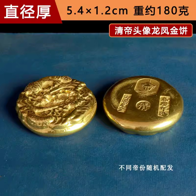 42 qing emperor's head portrait gold cake a brass gold plated