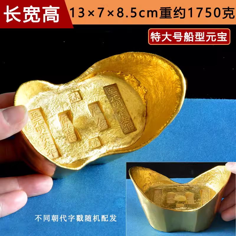 no. 6. large boat-shaped kingyuan treasure one brass gold plated