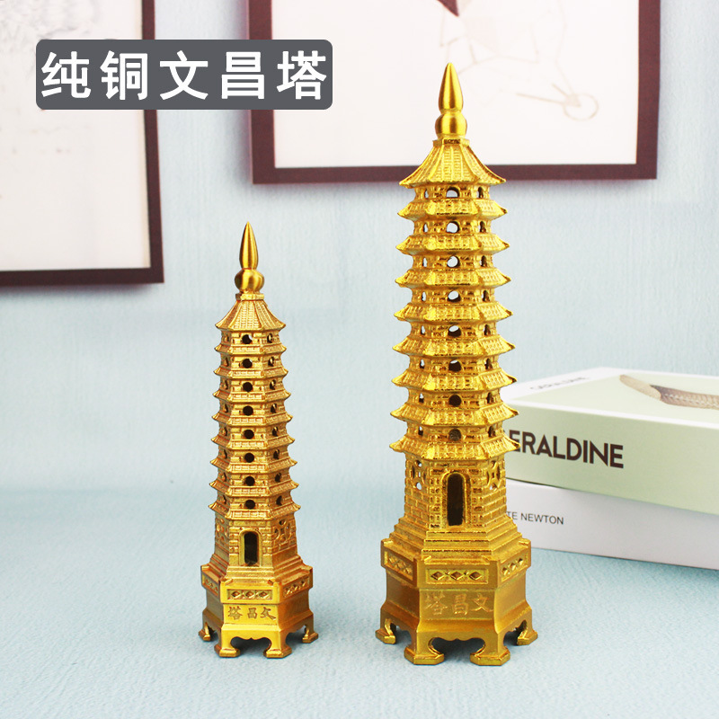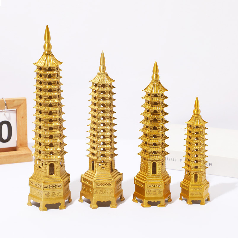 brass wenchang tower 9-layer height 18cm (gold)