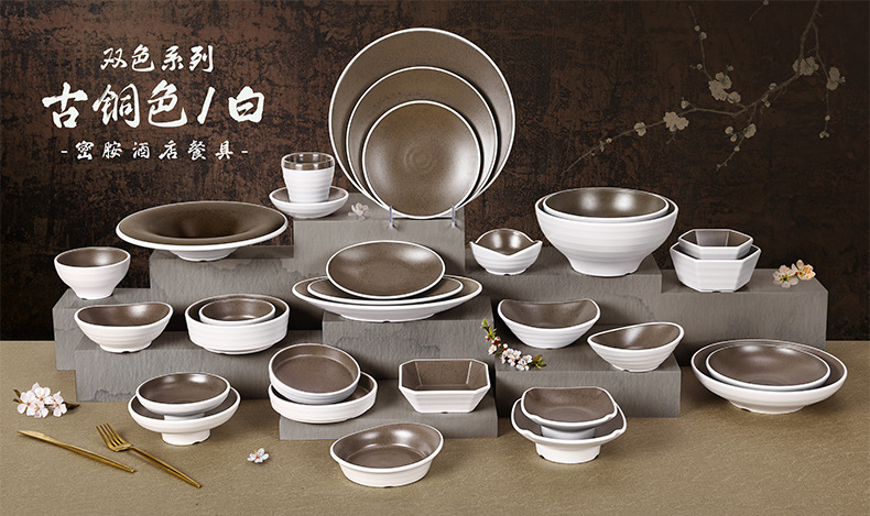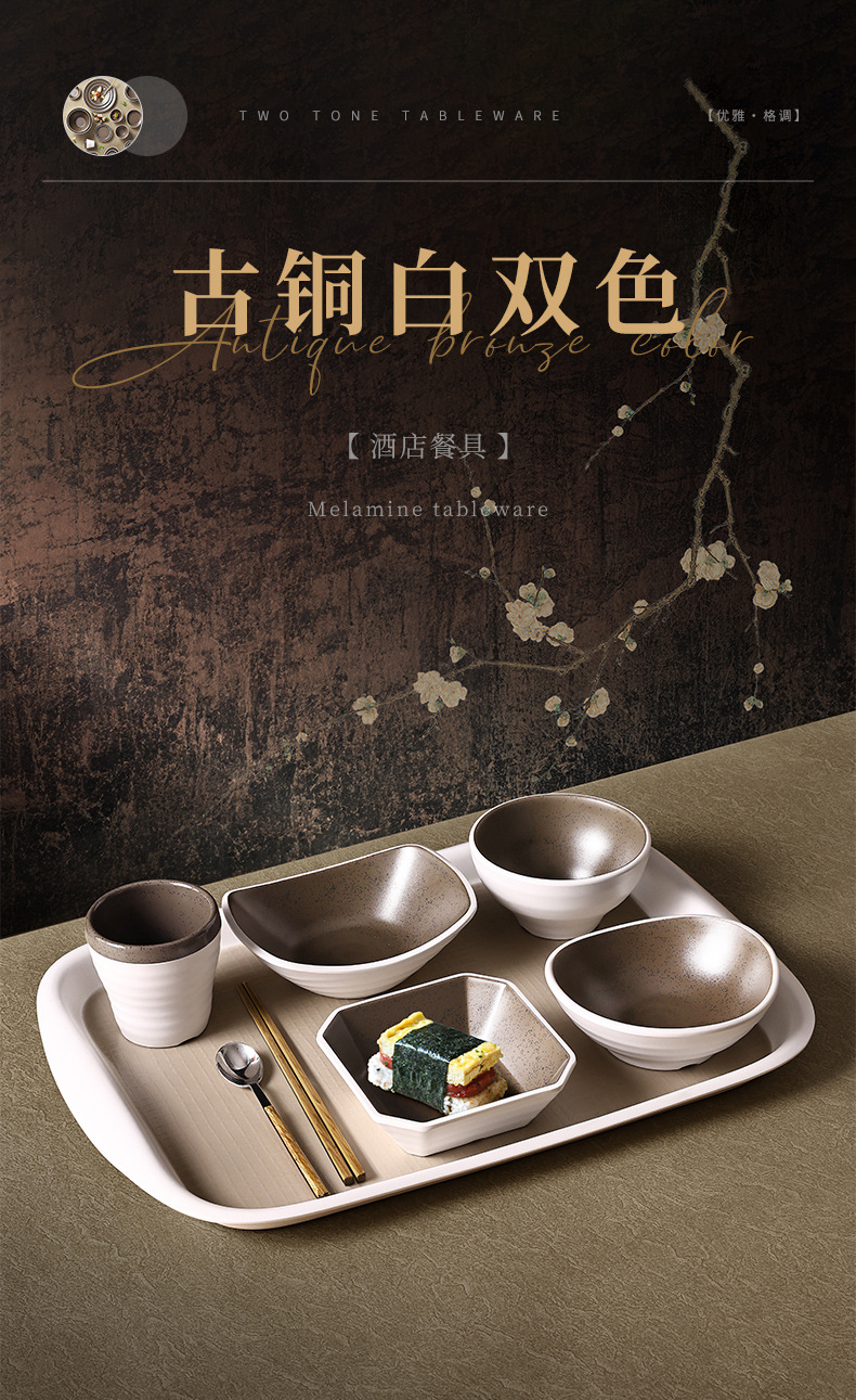 customized melamine plate rectangular grid clinker fast food plate school factory canteen grid meal tray business set