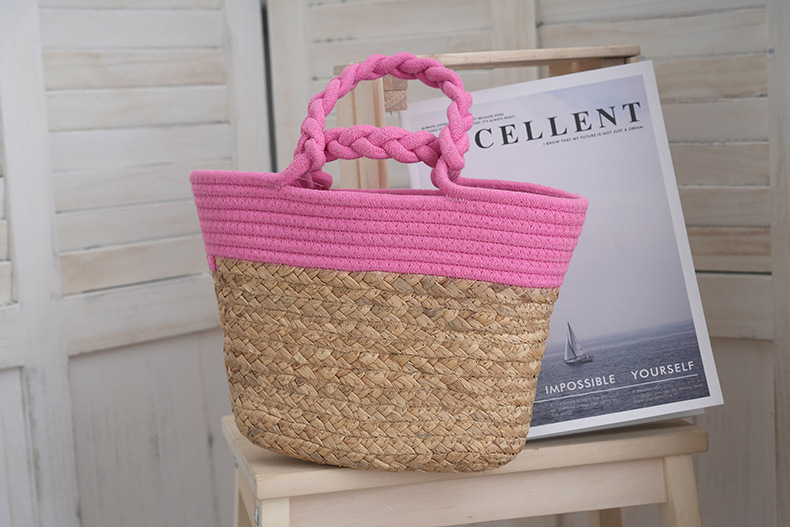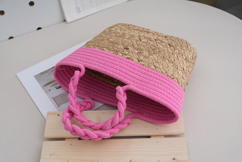 stitching beach bag pink handbag japanese and korean cotton string woven handbag casual woven bag in stock wholesale
