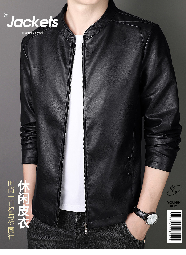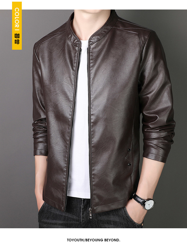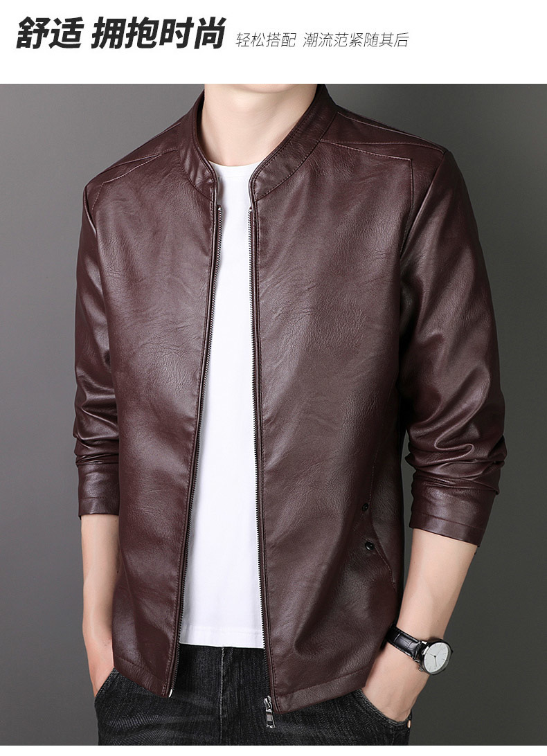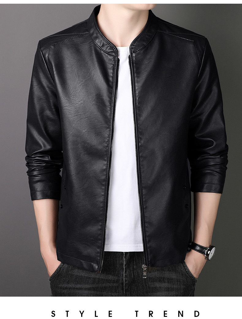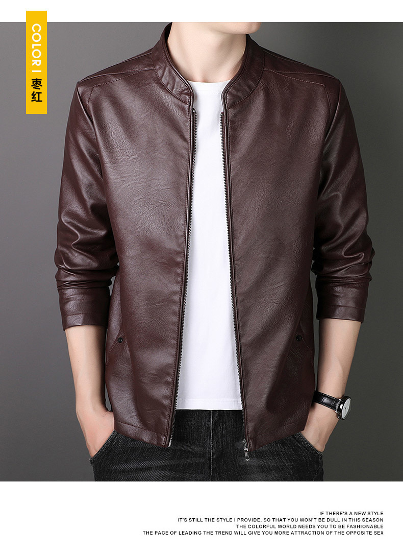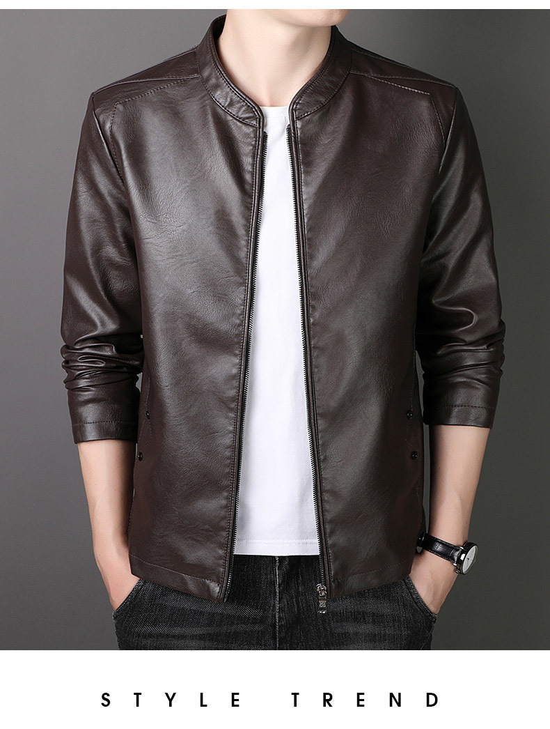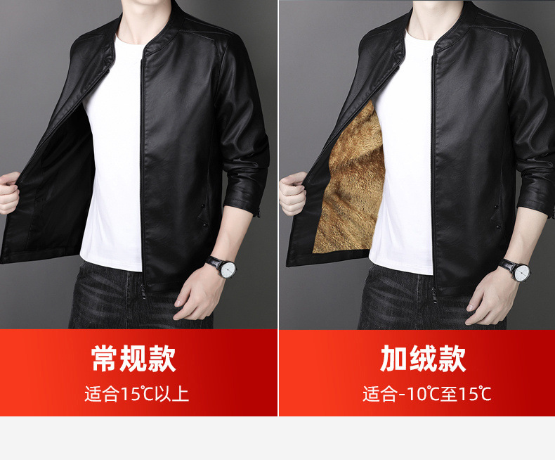 new spring and autumn thin leather men's short pu leather jacket casual business jacket men fleece-lined thick leather coat