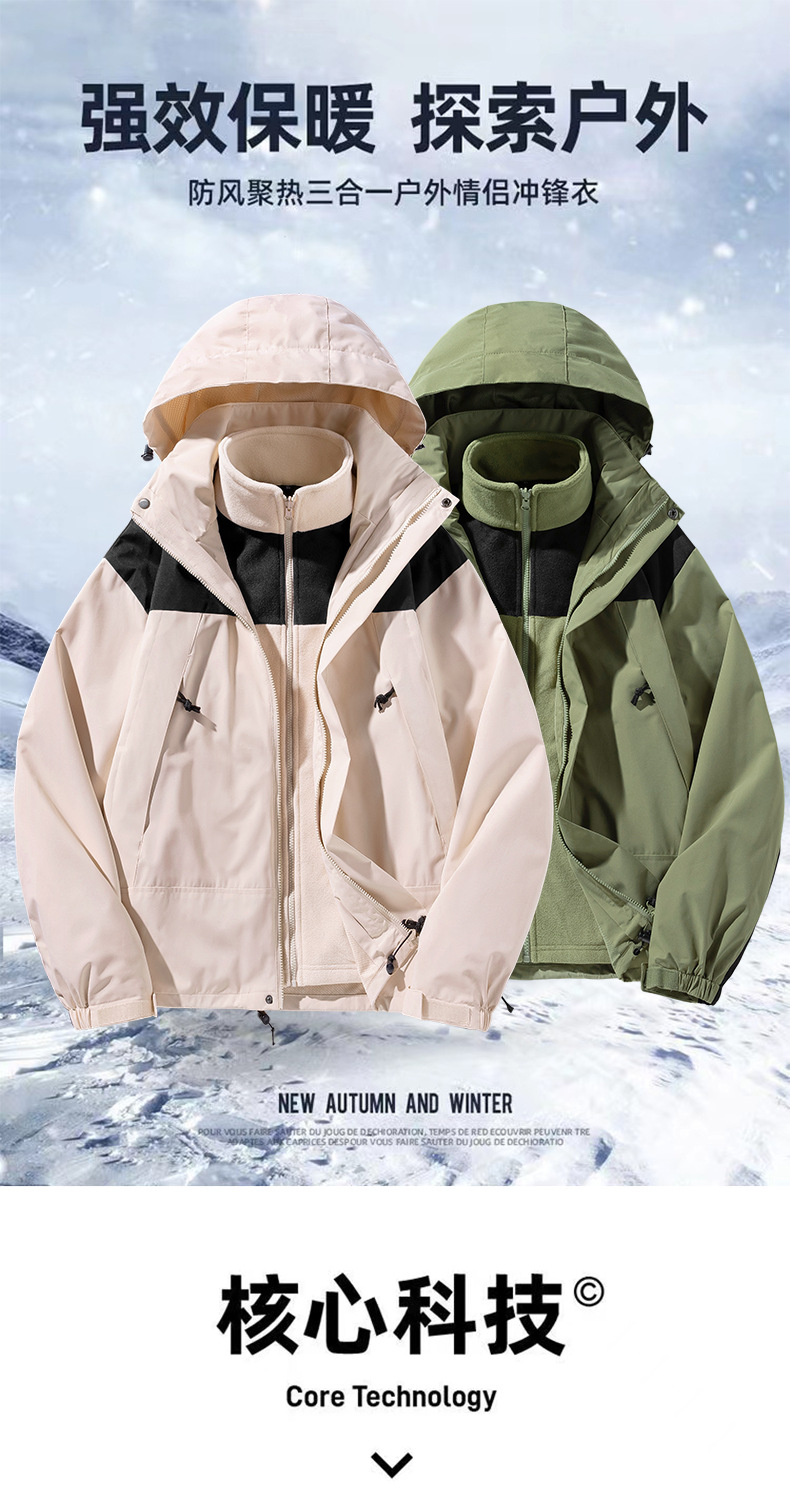 autumn and winter three-in-one shell jacket men's and women's same detachable thickened fleece-lined two-piece suit windproof waterproof mountaineering