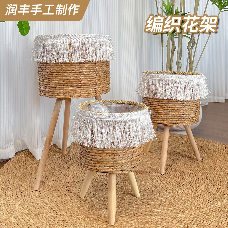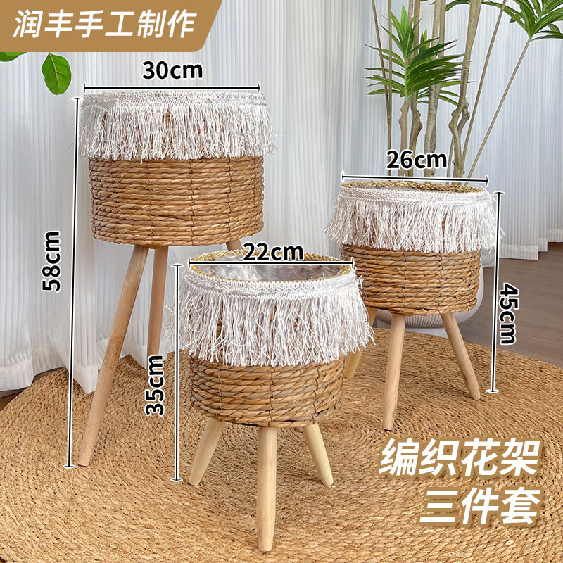 hand-woven flower stand three-piece set