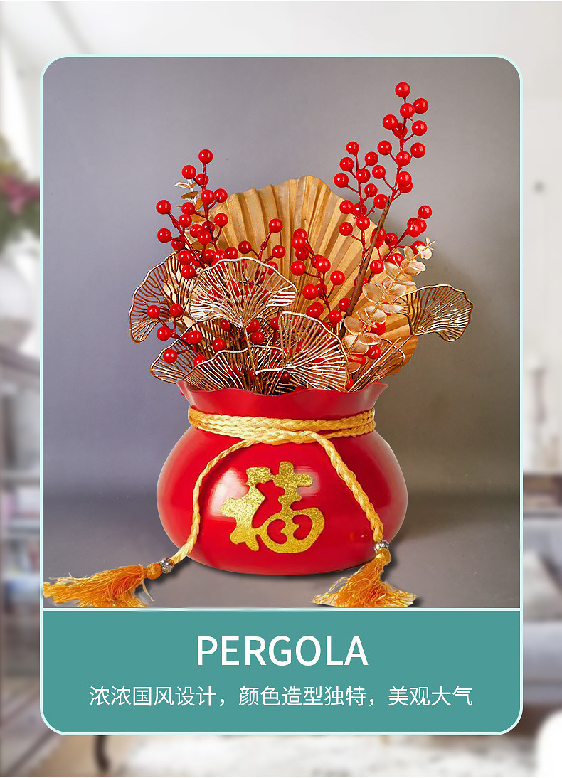 new year iron flower pot red