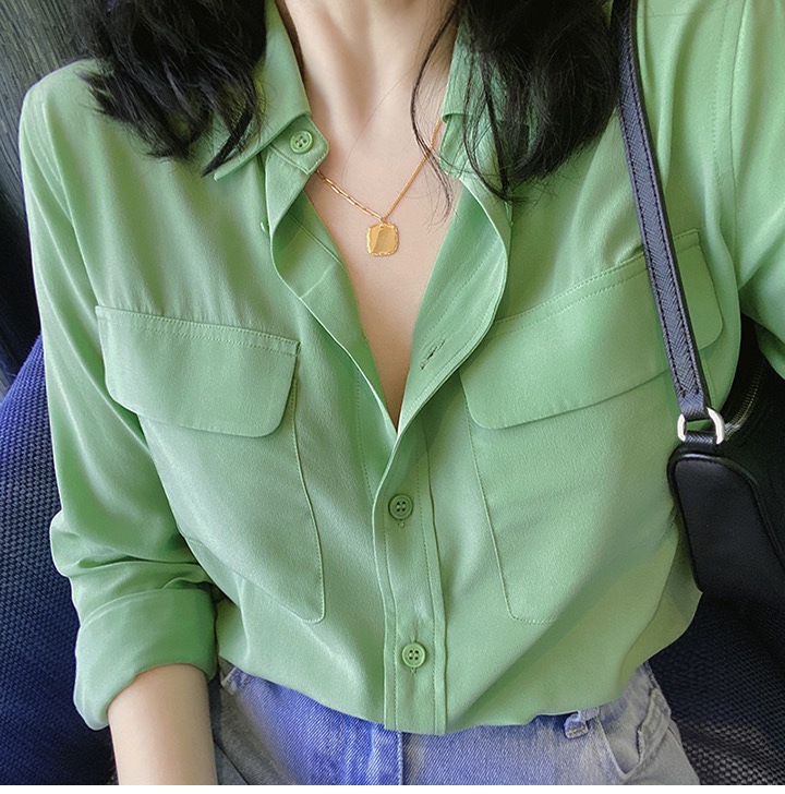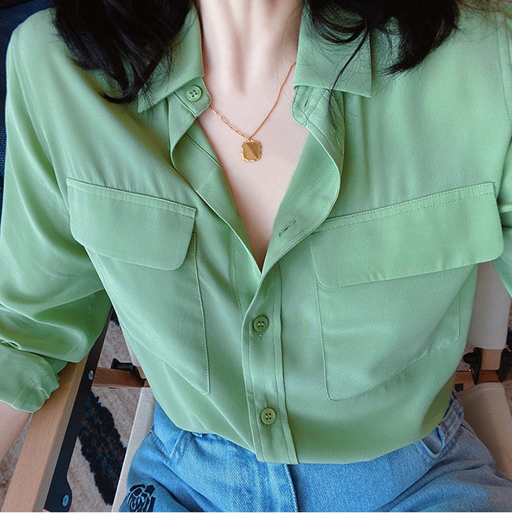 ten-color french classic pocket straight shirt simple graceful slimming stone washed mulberry silk silk commuter long sleeve