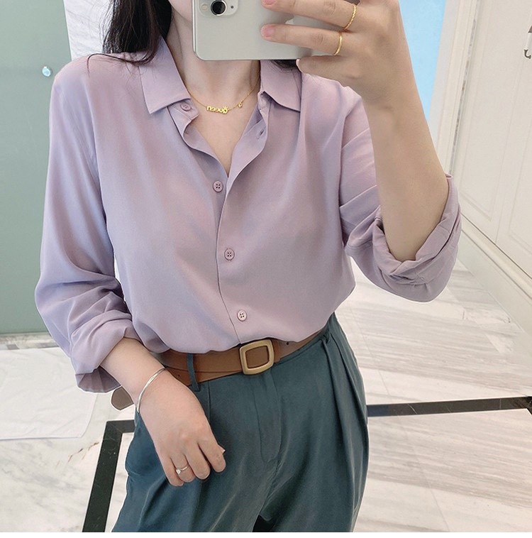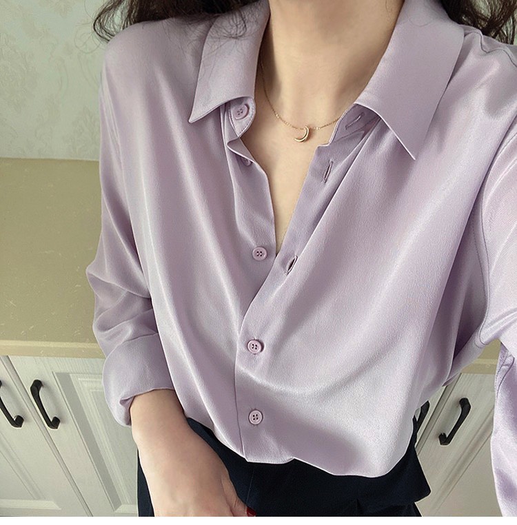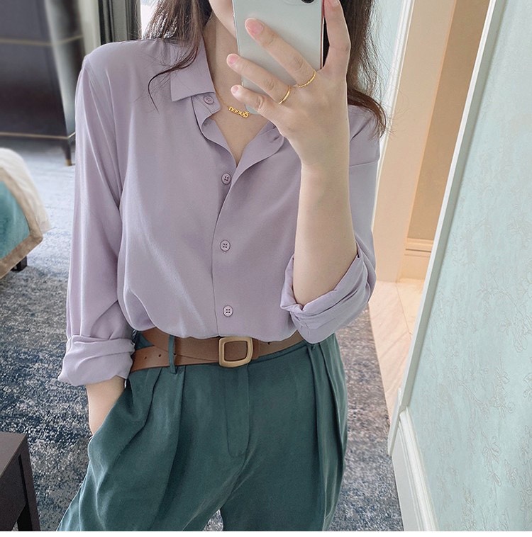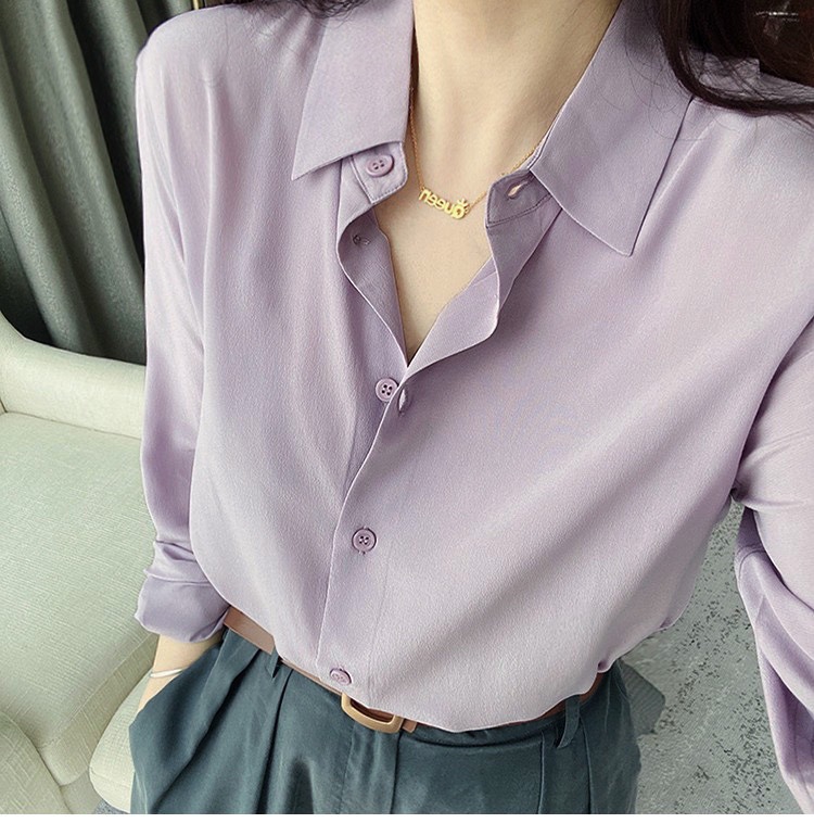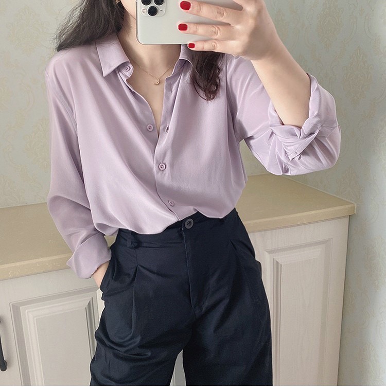 light luxury french silky stone washed mulberry silk long-sleeved shirt women's 2024 new design sense niche high-end top