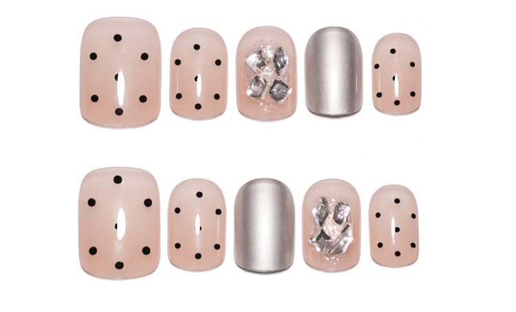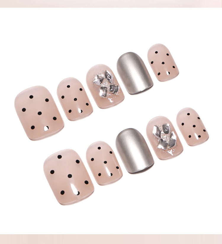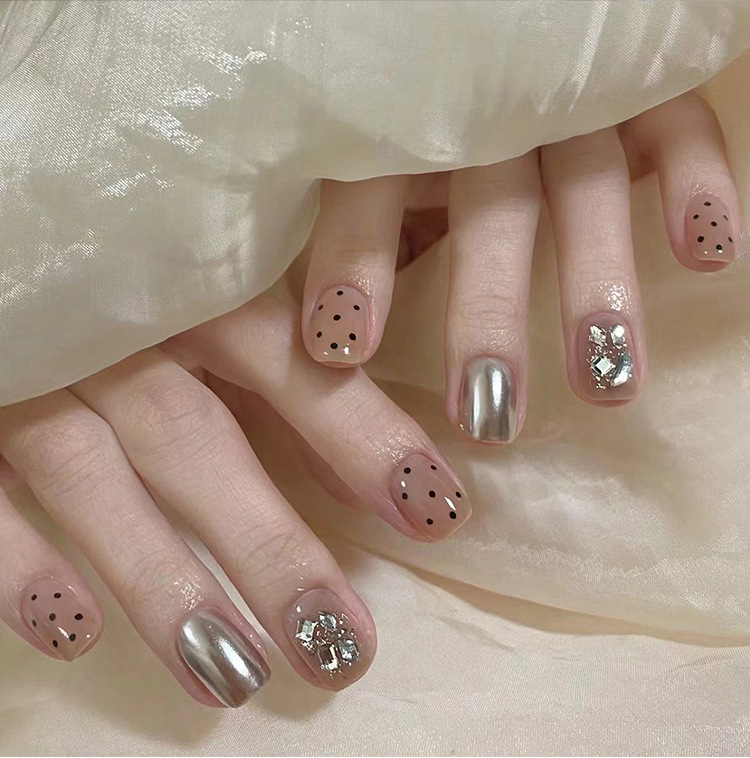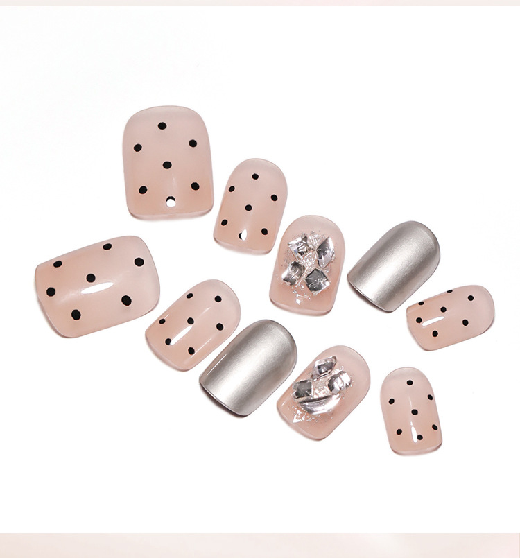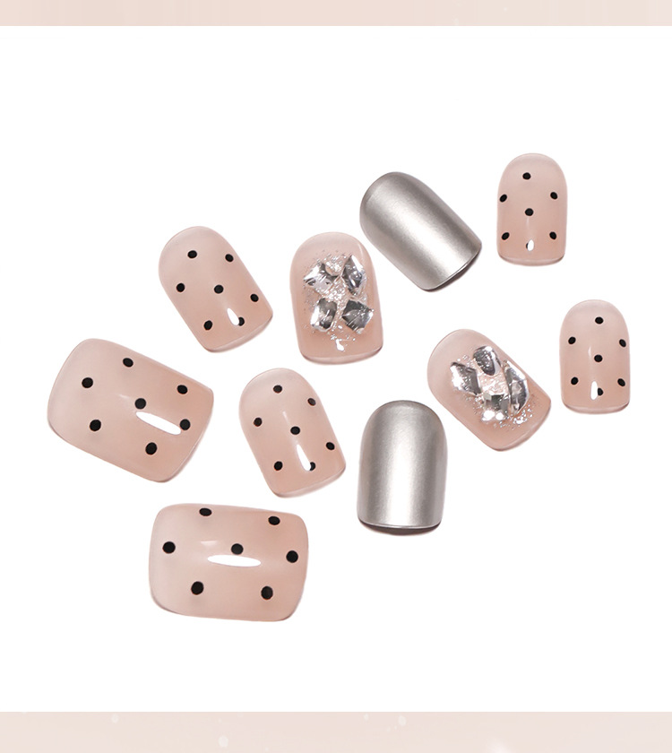 nude wear nail fake nails silver high-grade short polka dot manicure diamond in the debris repeatable nail tip finished product wholesale