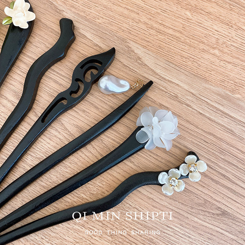 small pearl wooden hairpin