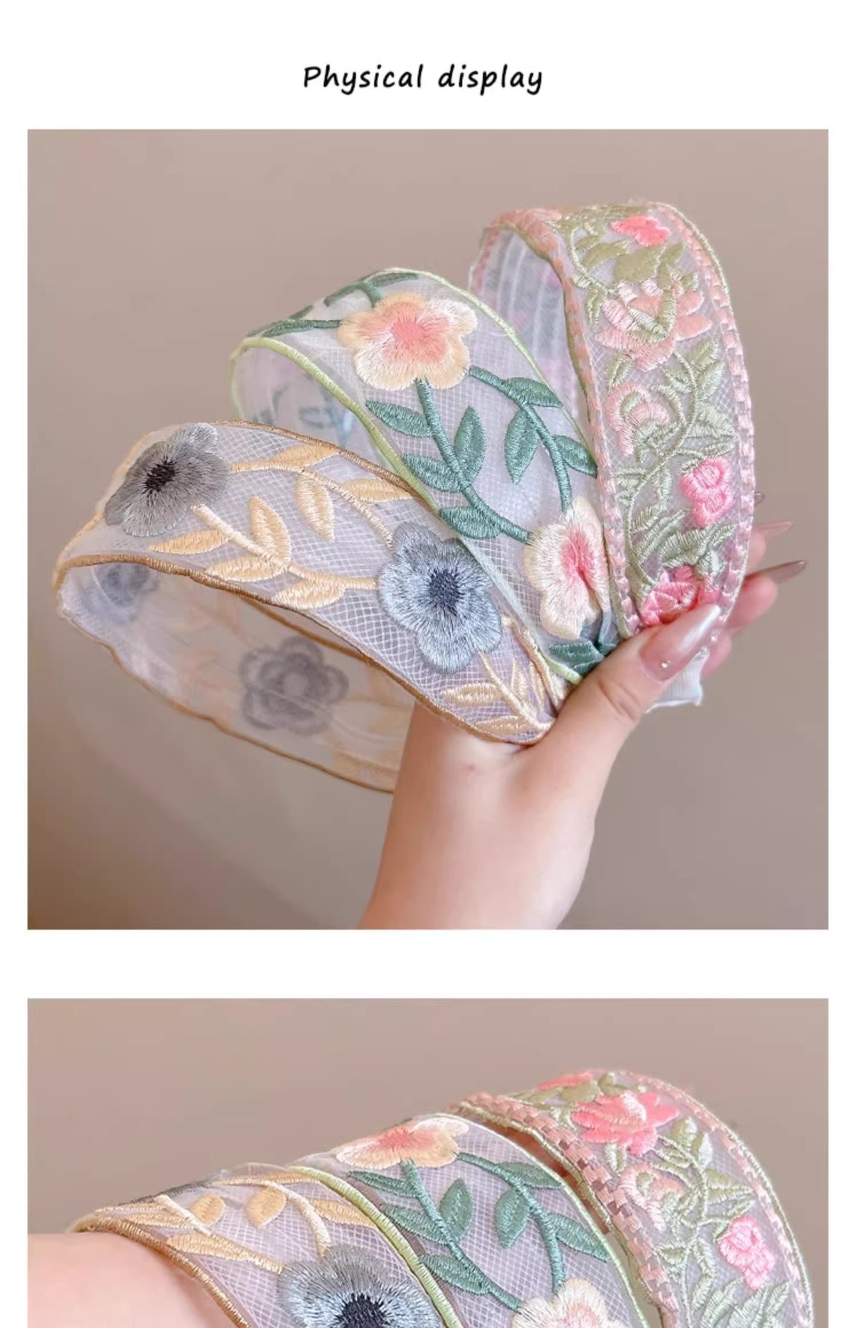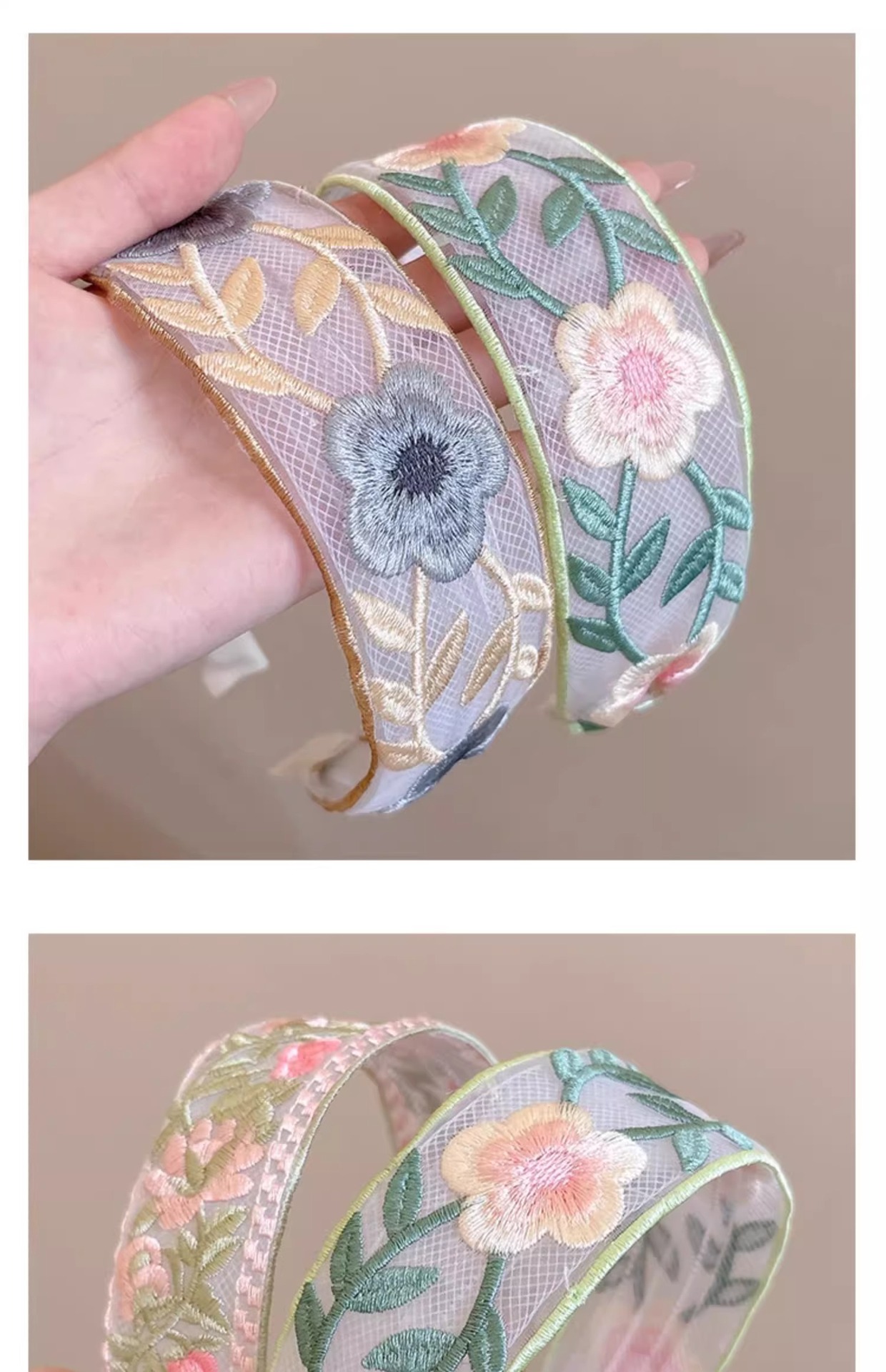 1# yellow pink embroidered headband.