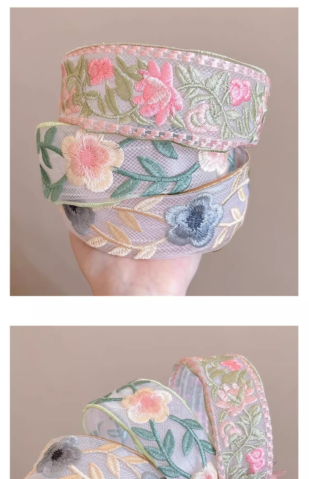 2# pink embroidered headband.