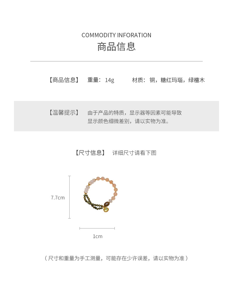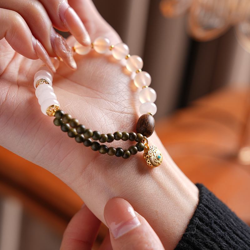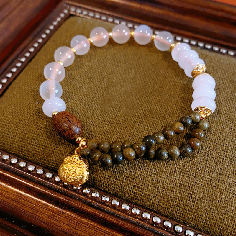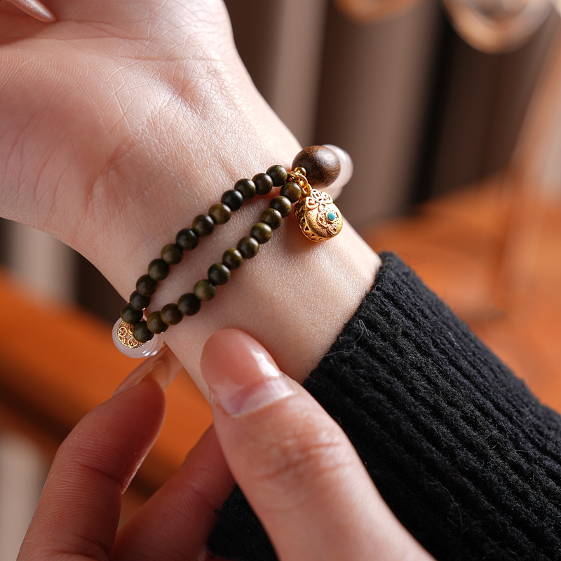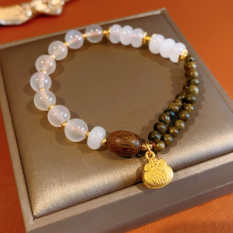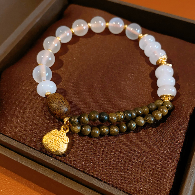 sugar heart agate green sandalwood bracelet (exquisite gift box)