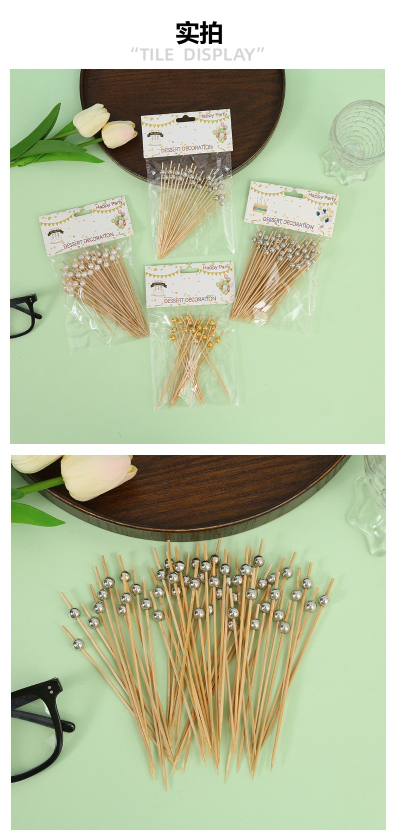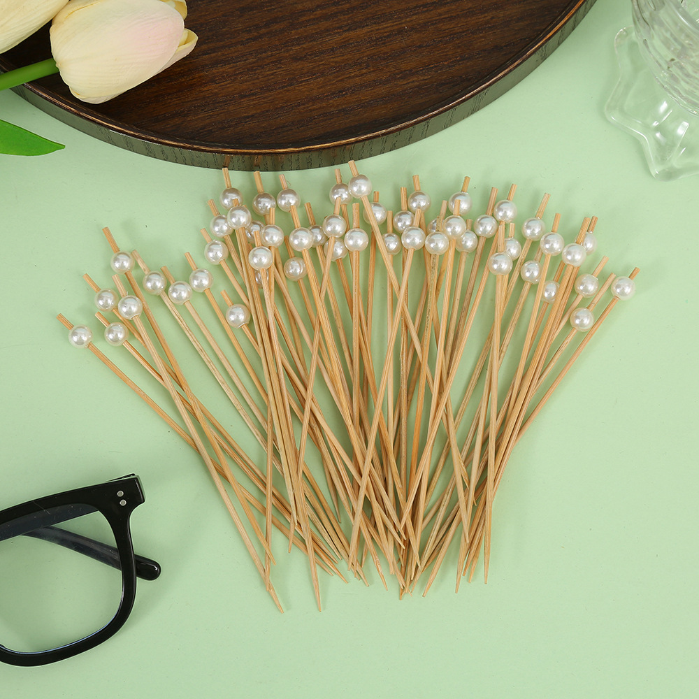 disposable fruit toothpick fruit fork pearl decorative art toothpick snack cocktail decoration bamboo fork factory direct supply