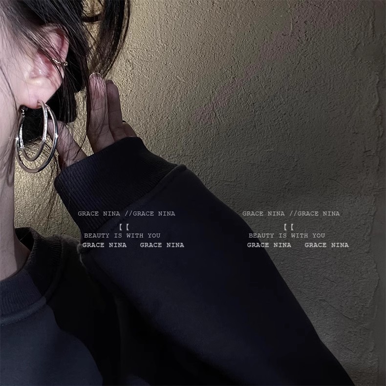 simple cold style double circle large earrings